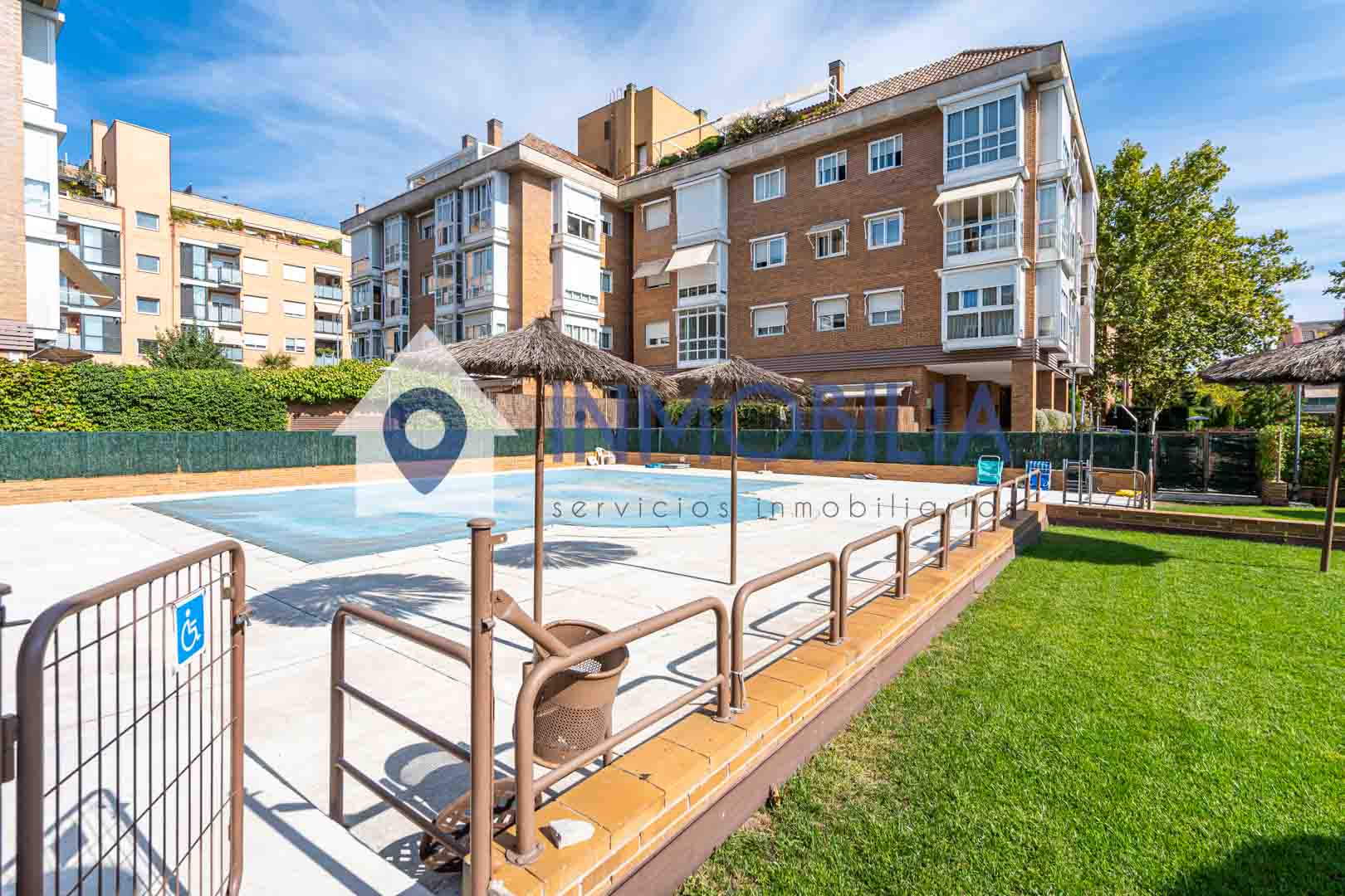 Grupo Inmobilia pone a tu disposición esta vivienda situada en una urbanización privada en la calle Bahía de Almería, a escasos metros de la avenida de Logroño, dentro del distrito de Barajas, en el barrio de la Alameda de Osuna. La finca, con ascensor, se enclava en un entorno residencial consolidado, rodeado de zonas verdes y perfectamente comunicado tanto por transporte público como por accesos directos a vías principales si te mueves en coche. El conjunto residencial destaca por su ambiente tranquilo, con zonas ajardinadas muy cuidadas y una agradable piscina comunitaria.