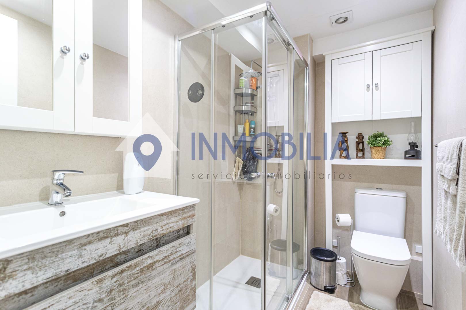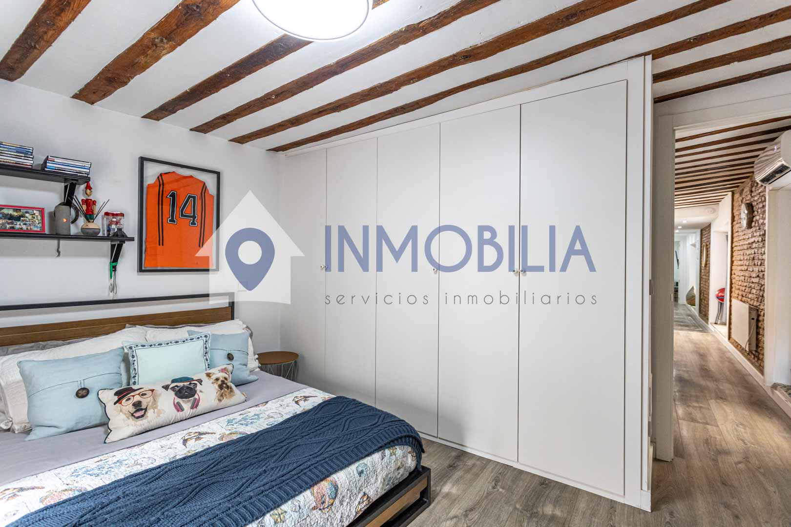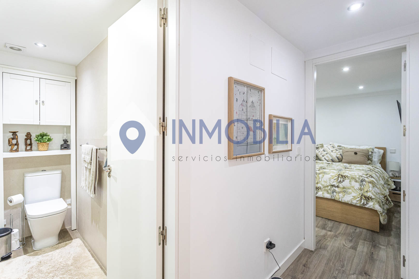 La vivienda, situada en una primera planta exterior y haciendo esquina, destaca por su extraordinaria luminosidad y su cuidada distribución. Con una superficie catastral de 105 m², ofrece dos amplios dormitorios con excelente capacidad de almacenaje y dos baños completos de diseño contemporáneo, uno de ellos en suite.