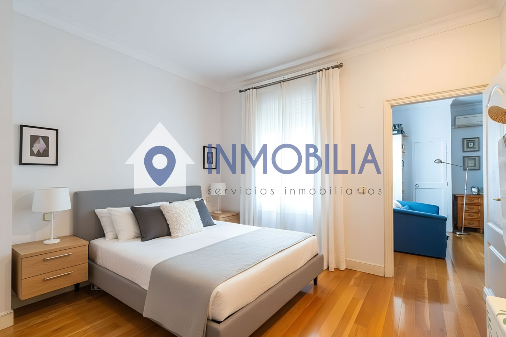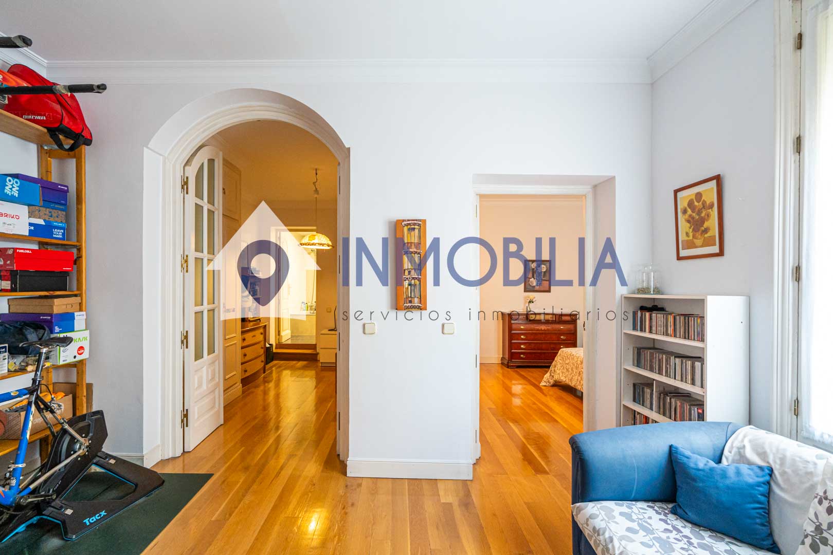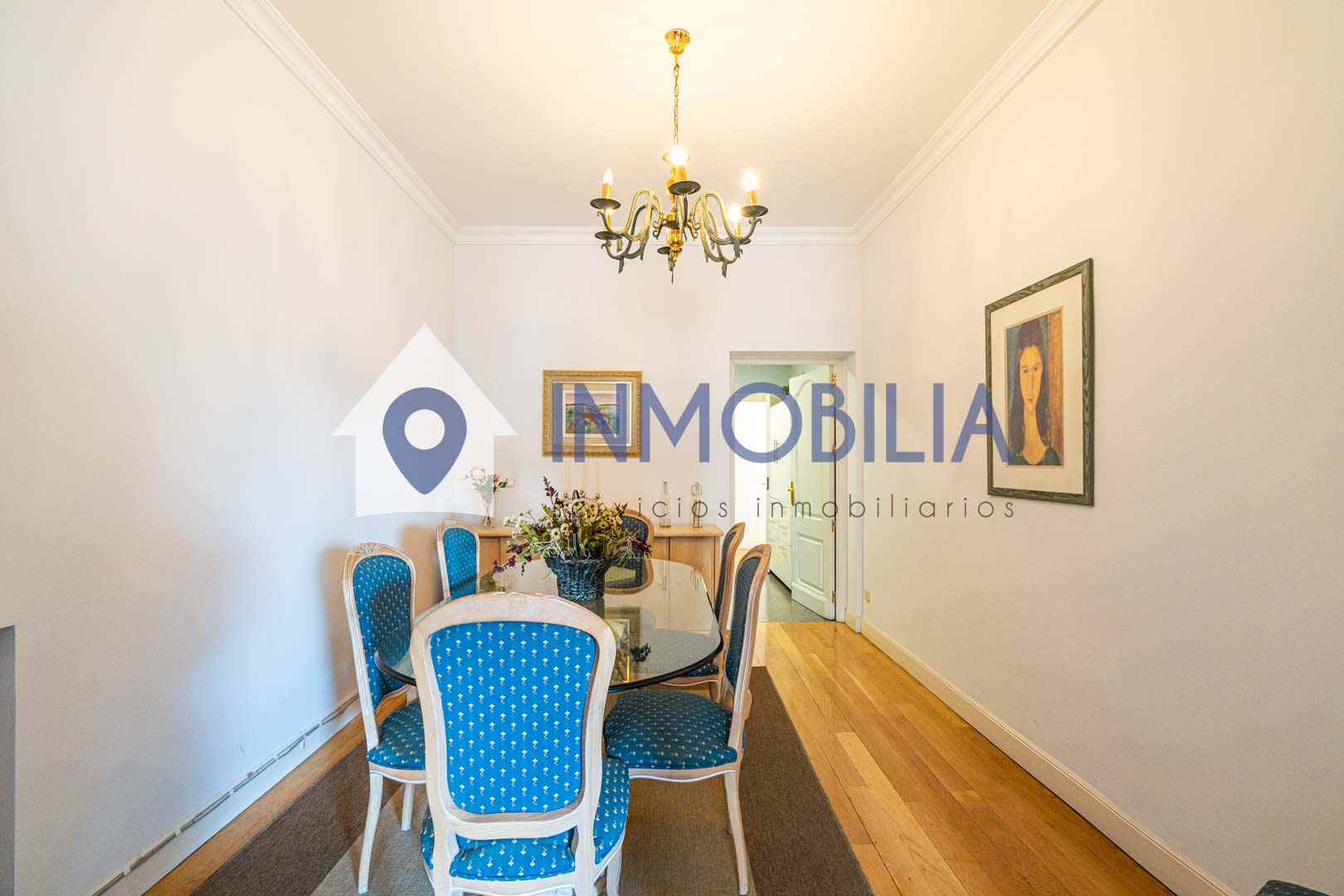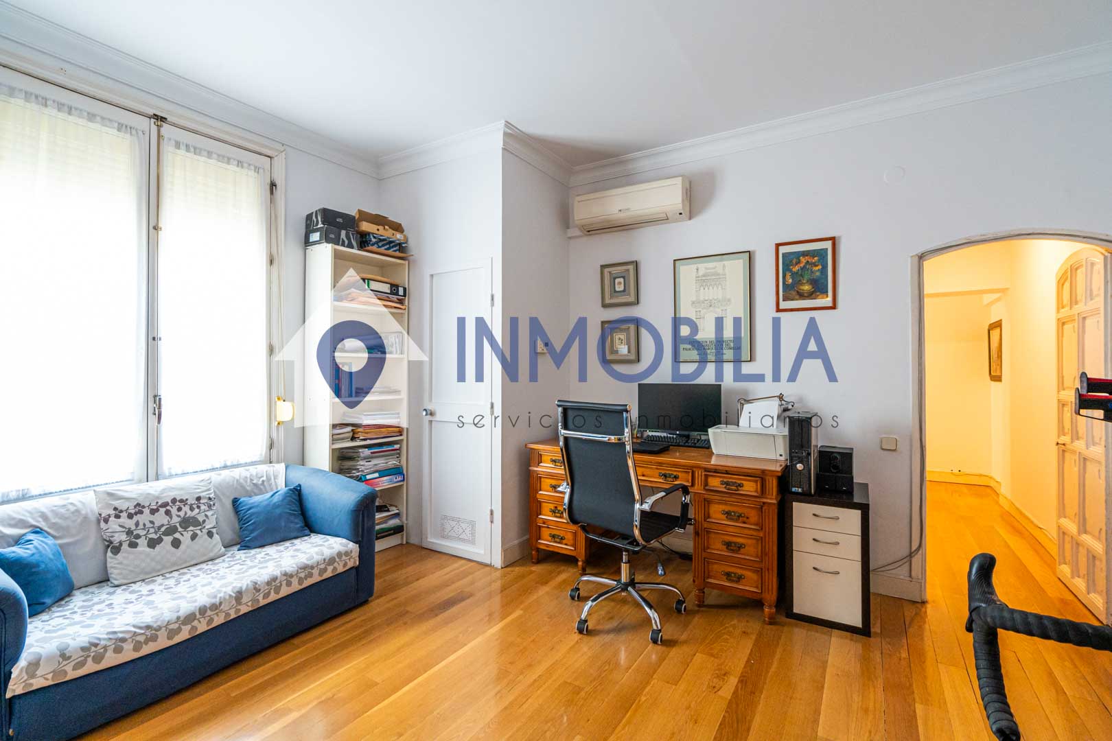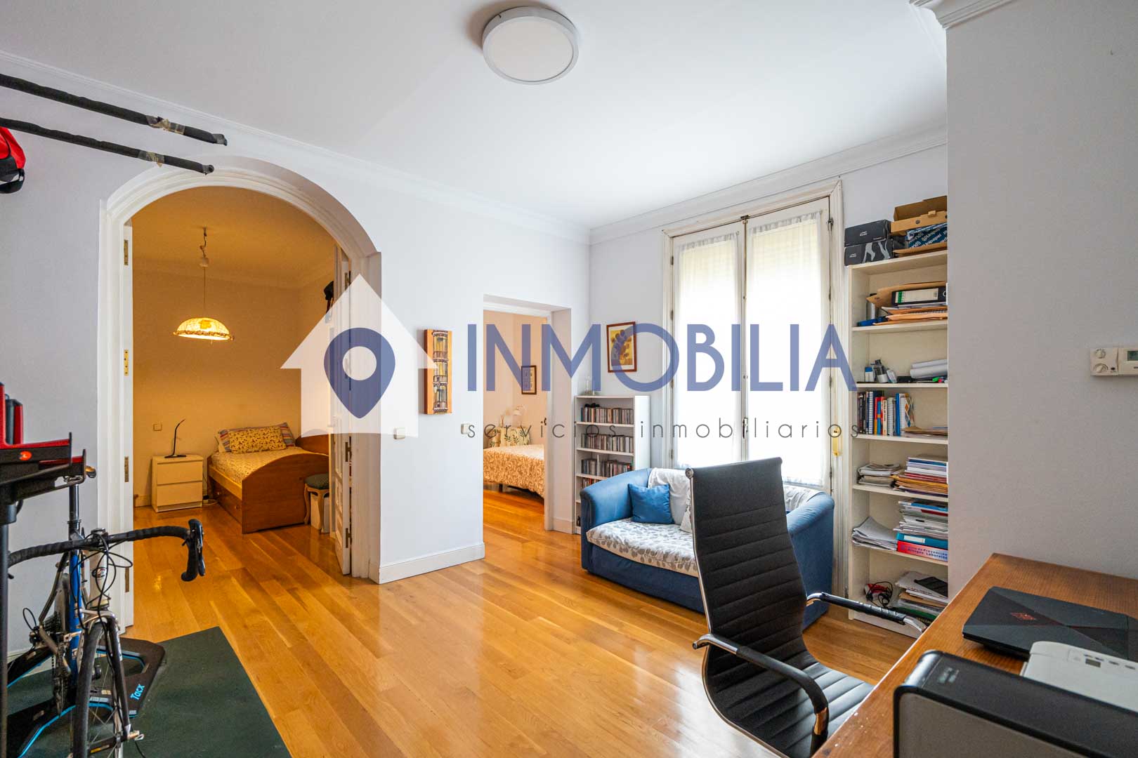 El dormitorio principal cuenta con una encantadora antesala con balconada, que inunda de luz este rincón de descanso, que actualmente se esta usando como despacho. Entre sus calidades destacan los suelos de tarima maciza sobre rastreles, una auténtica joya constructiva, molduras originales restauradas, paredes lisas, calefacción individual por gas natural y aire acondicionado por split en varias estancias.