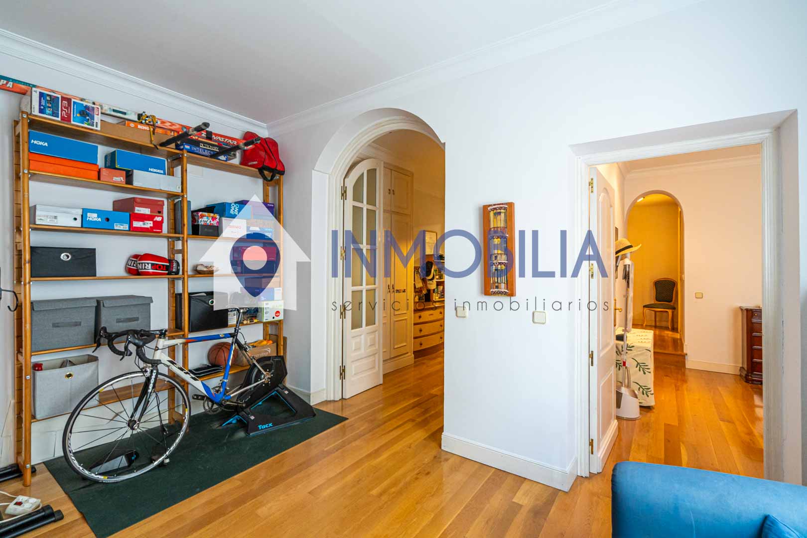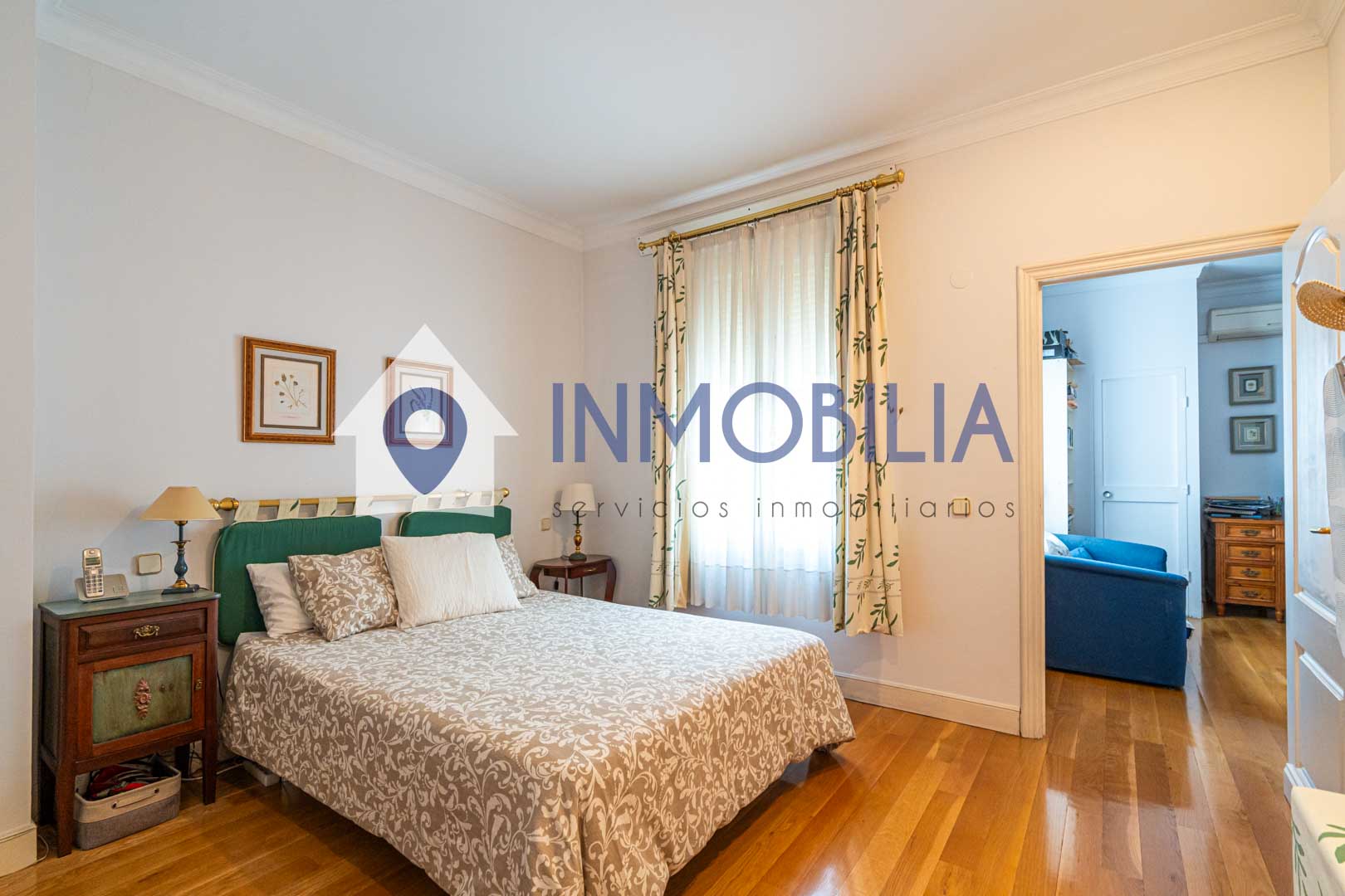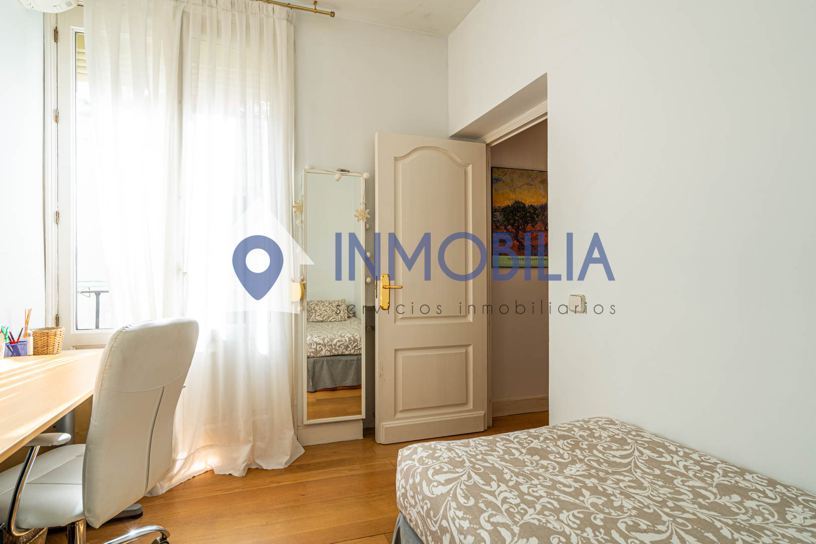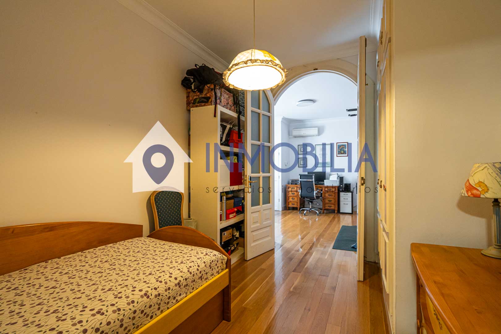 El dormitorio principal cuenta con una encantadora antesala con balconada, que inunda de luz este rincón de descanso, que actualmente se esta usando como despacho. Entre sus calidades destacan los suelos de tarima maciza sobre rastreles, una auténtica joya constructiva, molduras originales restauradas, paredes lisas, calefacción individual por gas natural y aire acondicionado por split en varias estancias.