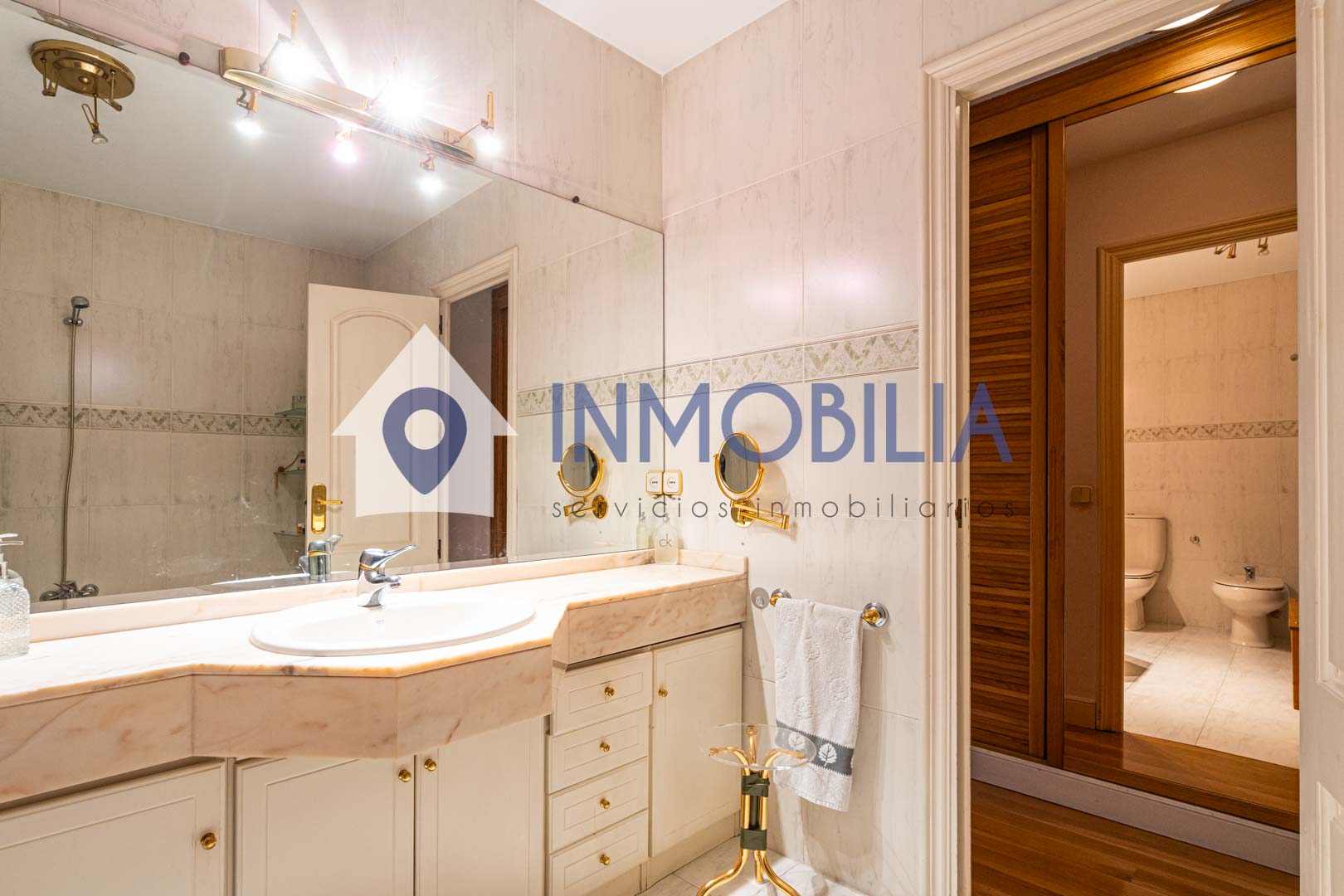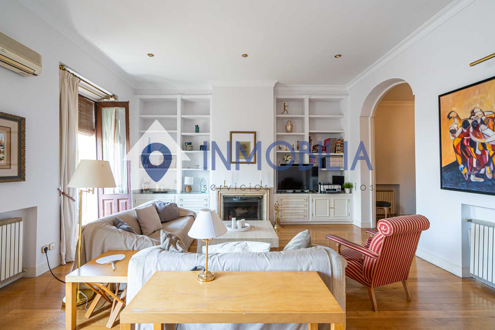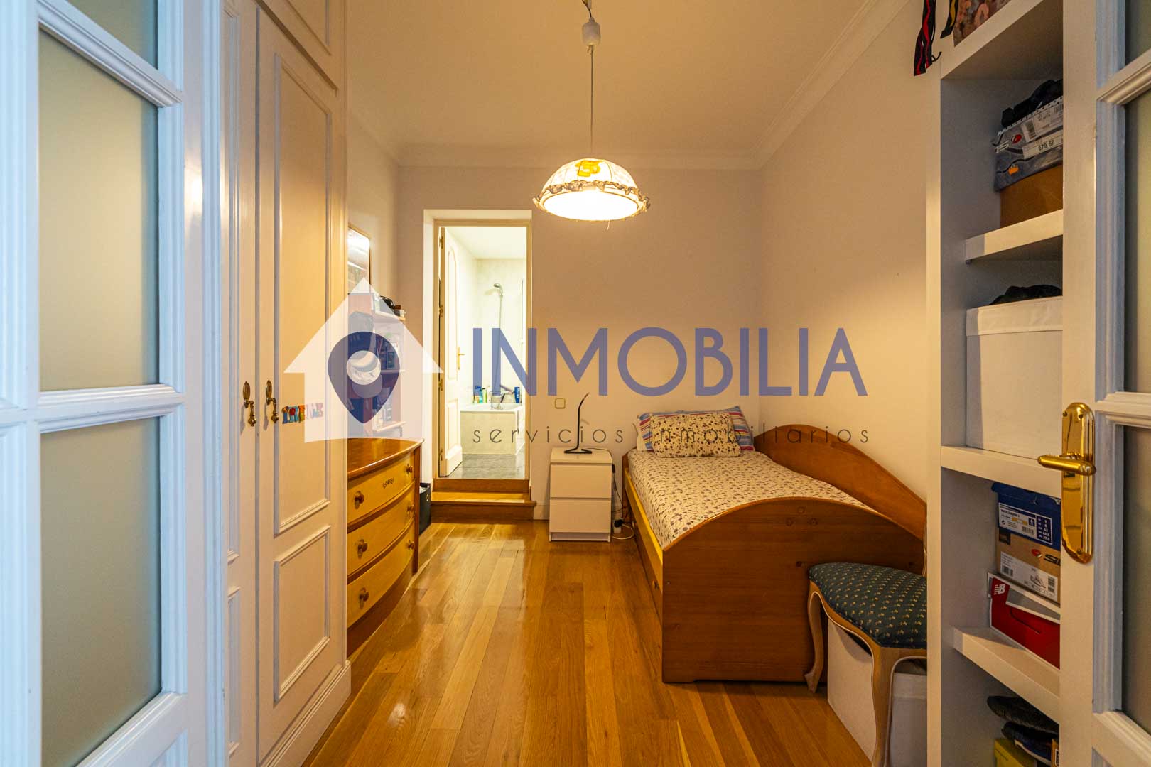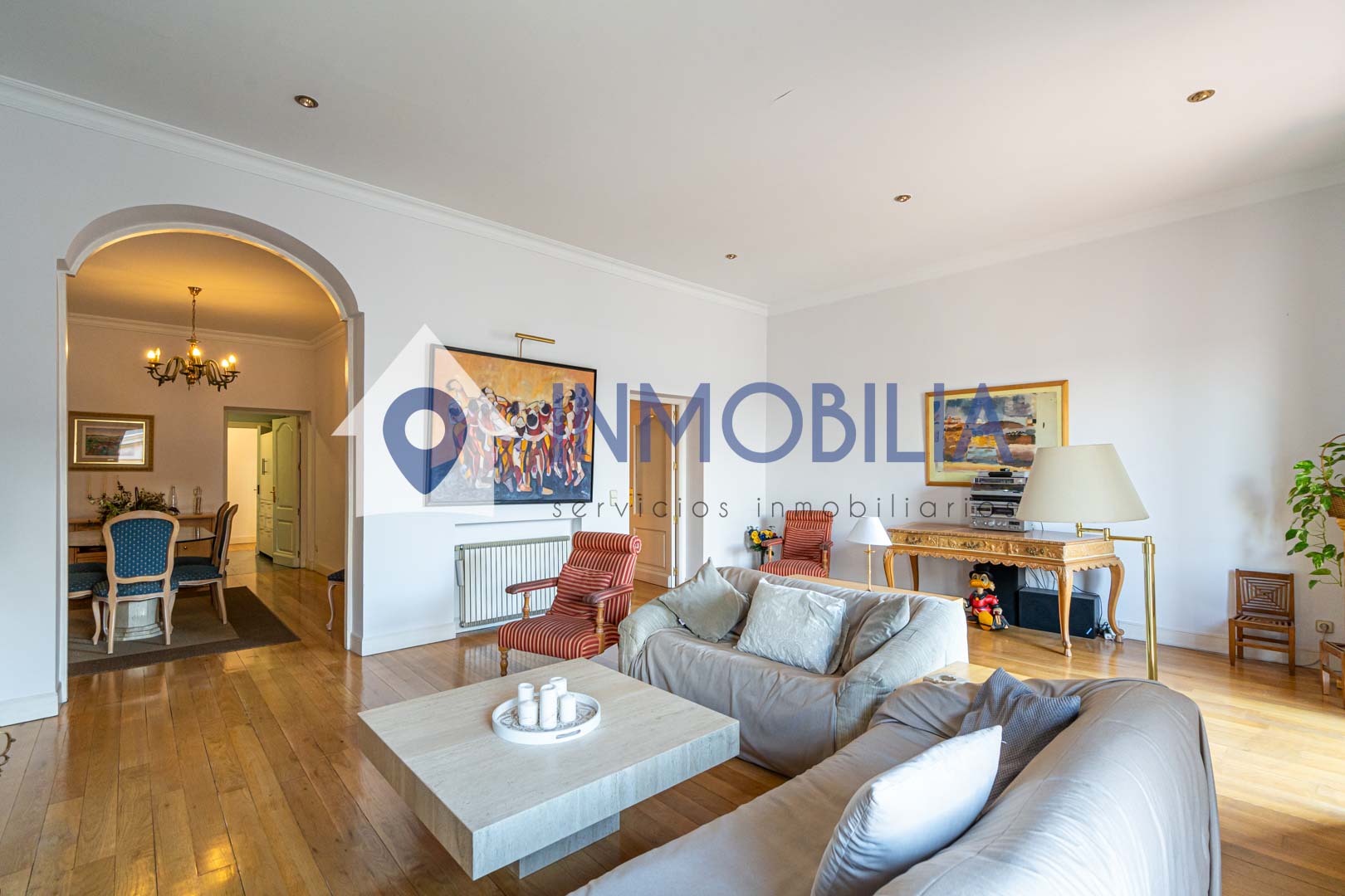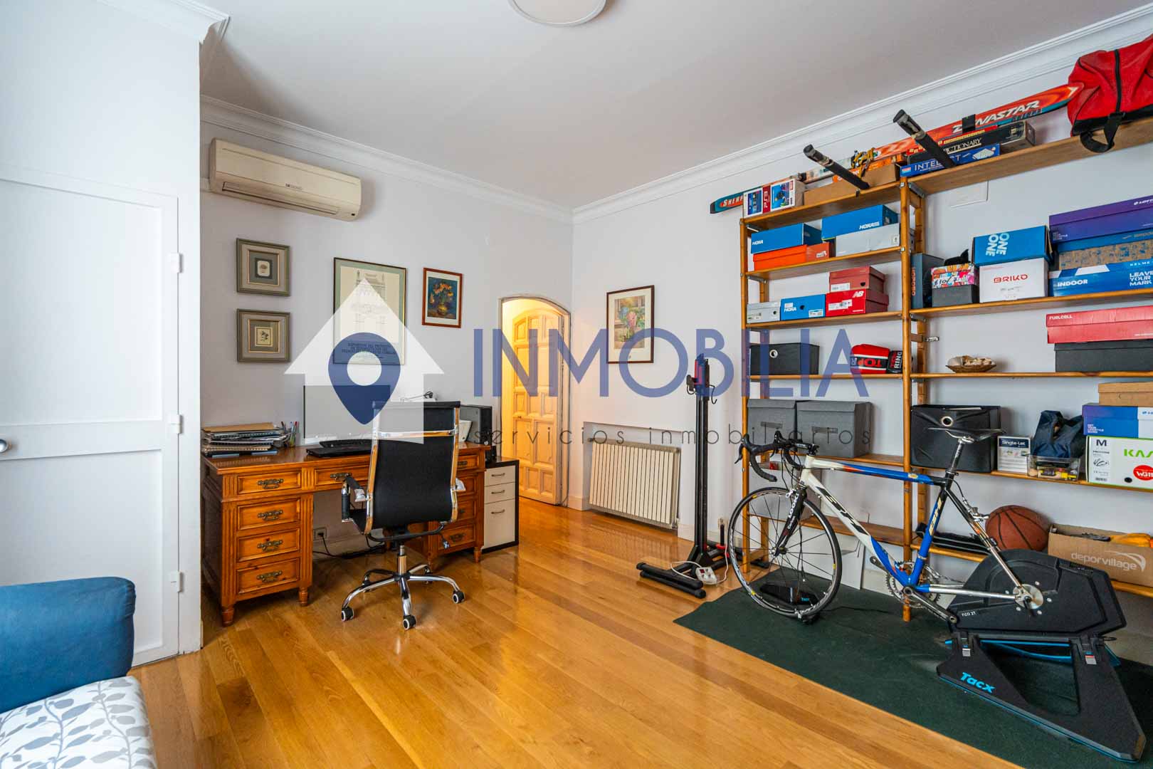 El dormitorio principal cuenta con una encantadora antesala con balconada, que inunda de luz este rincón de descanso, que actualmente se esta usando como despacho. Entre sus calidades destacan los suelos de tarima maciza sobre rastreles, una auténtica joya constructiva, molduras originales restauradas, paredes lisas, calefacción individual por gas natural y aire acondicionado por split en varias estancias.