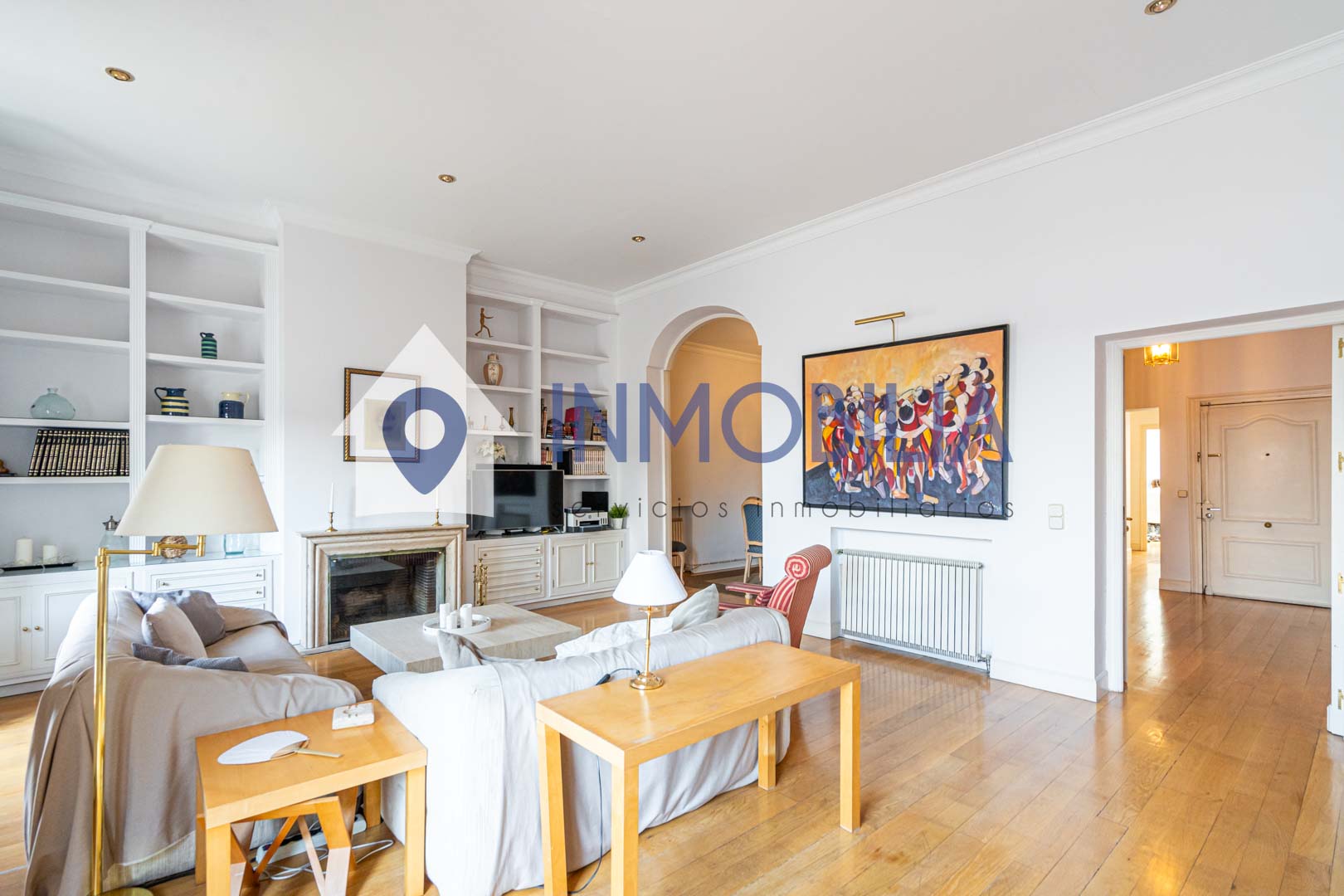 En la señorial Calle del Reloj, frente al Senado y a pocos pasos del Palacio Real, se encuentra esta elegante vivienda exterior de 195 m², ubicada en el emblemático barrio de Palacio, en el corazón histórico de Madrid. Esta calle, cuyo nombre procede de un antiguo reloj de sol que adornaba la fachada de unas casas de María de Córdoba y Aragón, conserva la esencia del Madrid más noble. Aquellas casas fueron posteriormente cedidas para la fundación de un convento de agustinos, dejando huella en el trazado y carácter del entorno.