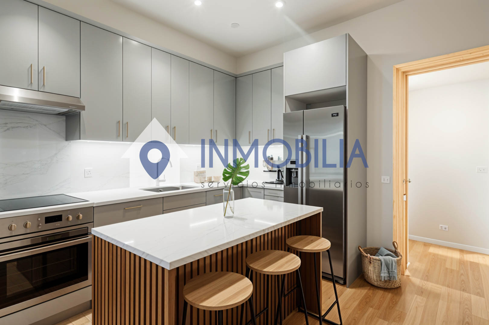 La vivienda, situada con orientación suroeste, destaca por su luminosidad natural, especialmente en el amplio salón con dos balconadas a la calle. Su distribución es funcional y elegante: nada mas acceder tenemos un amplio vestidor y un encantador aseo decorado con piezas únicas de cerámica artesanal., a continuación el amplio salón con chimenea, comedor independiente, cocina equipada, tres dormitorios dobles ,dos de ellos con baño en suite.