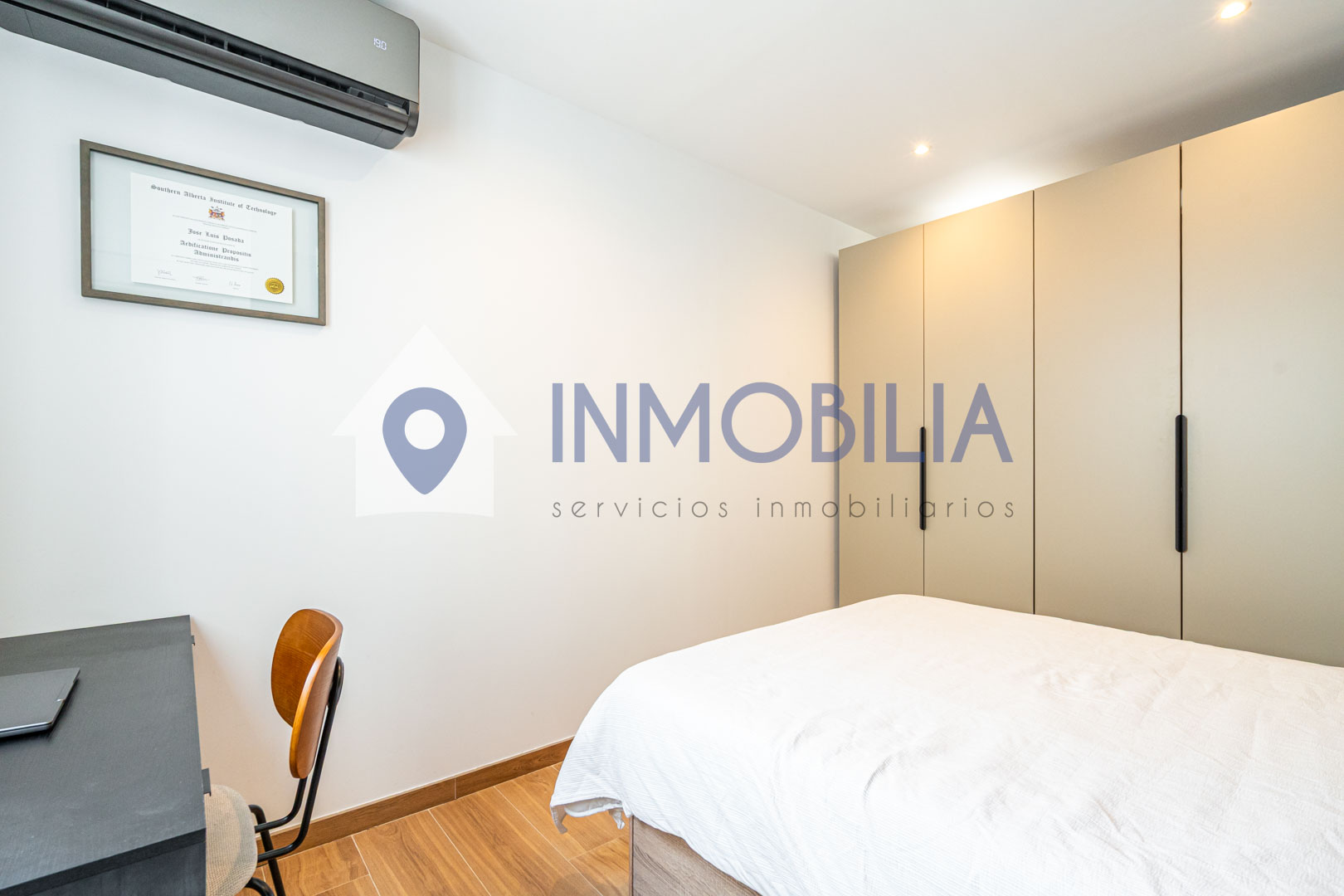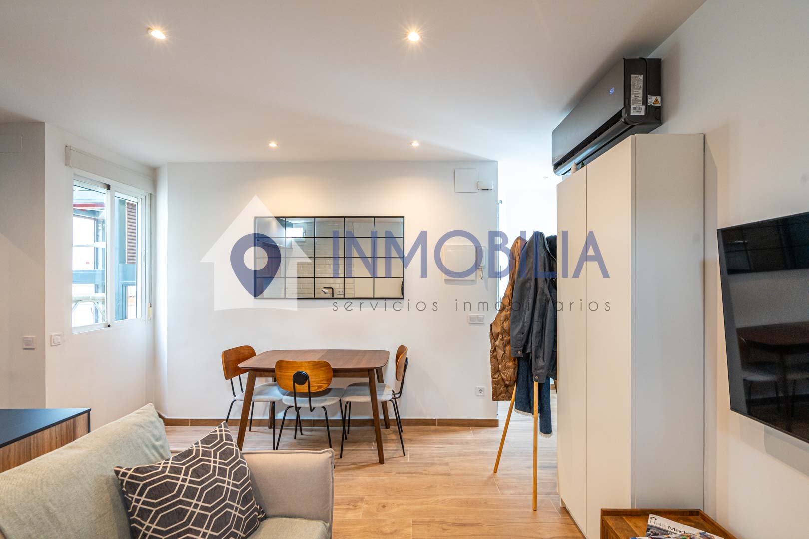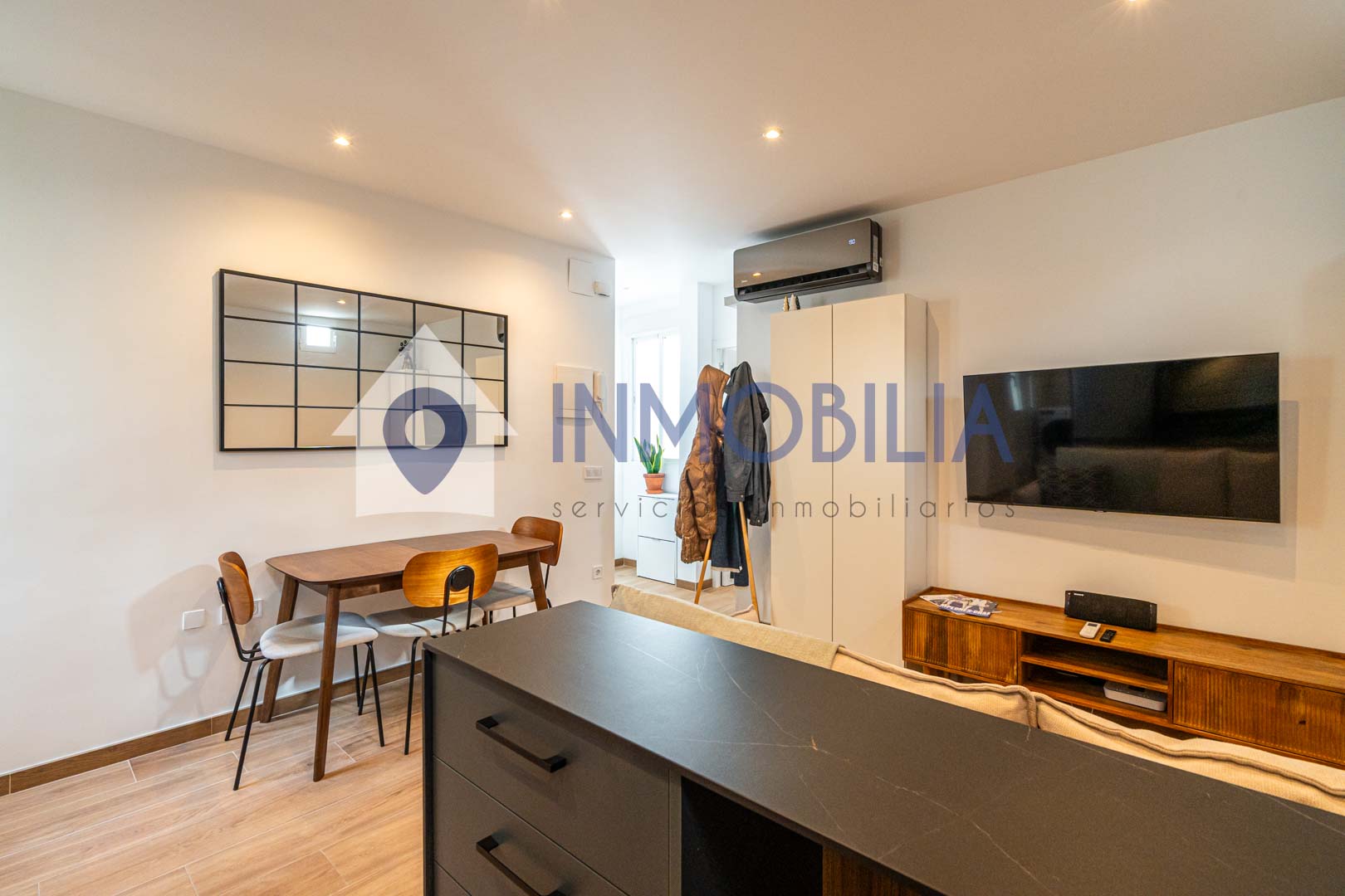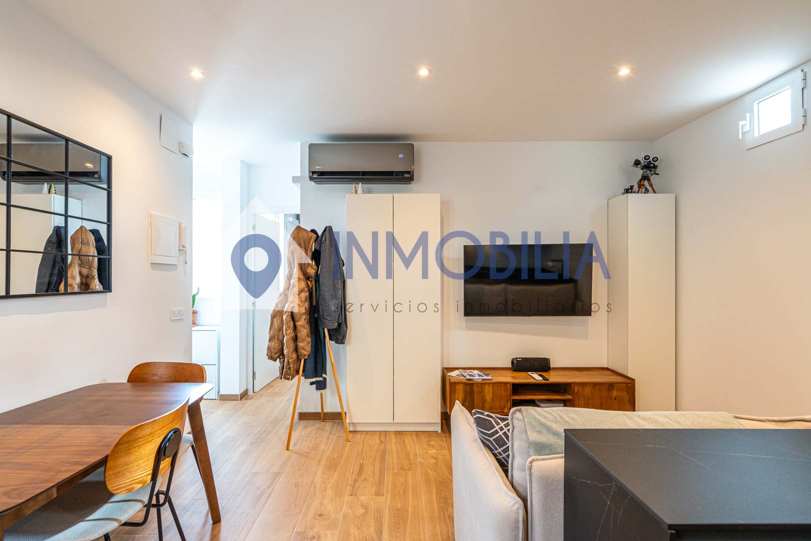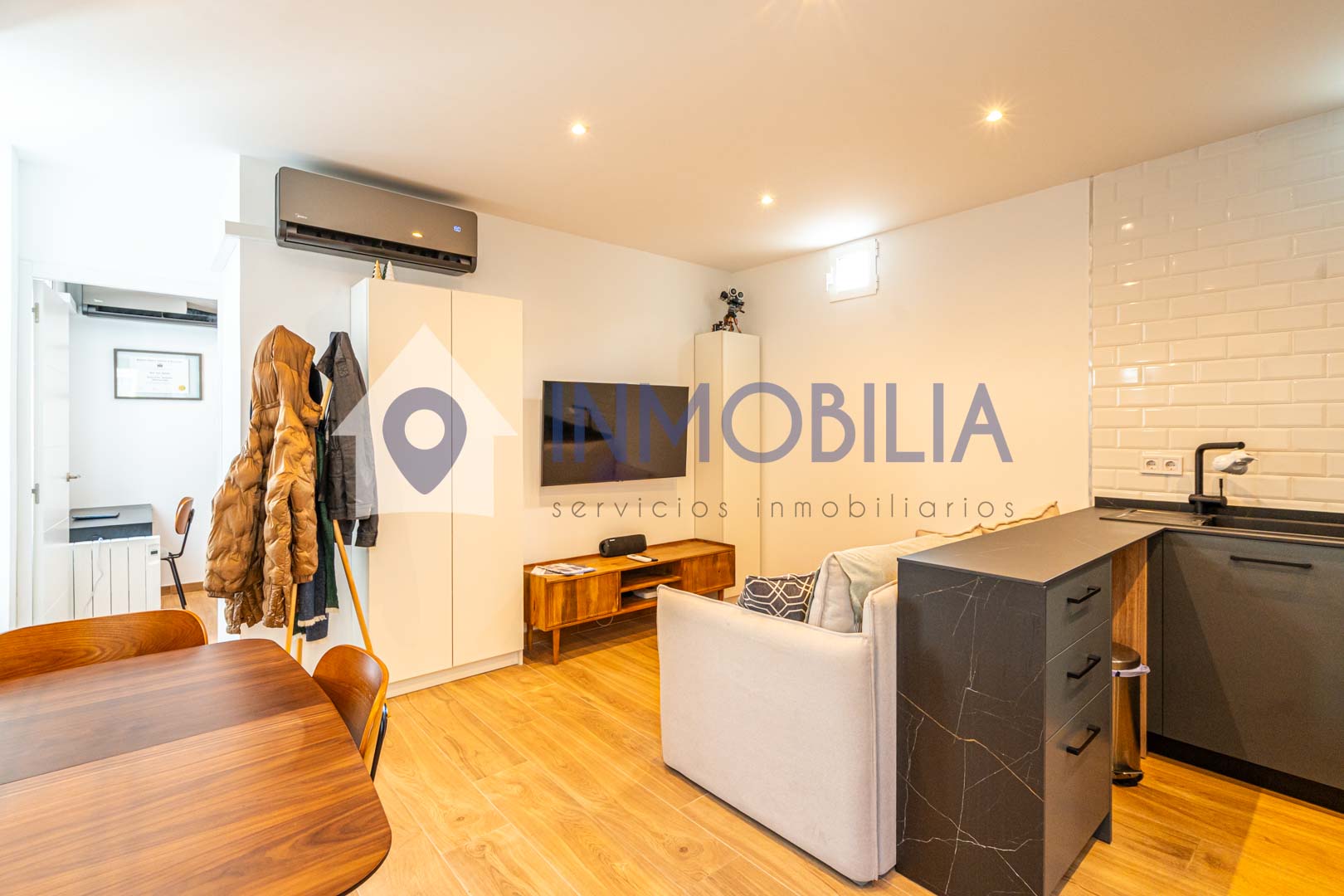 La vivienda, reformada íntegramente en 2023, destaca por su estética moderna y minimalista, materiales de alta gama y un aprovechamiento inteligente del espacio. Cuenta con 53 m² catastrales (45 útiles) distribuidos en un dormitorio doble independiente, baño completo con plato de ducha, cocina abierta de diseño equipada con electrodomésticos premium (horno inteligente, frigorífico a estrenar, campana integrada) y un salón acogedor con Smart TV y aire acondicionado con bomba de calor, perfecto para todas las estaciones.