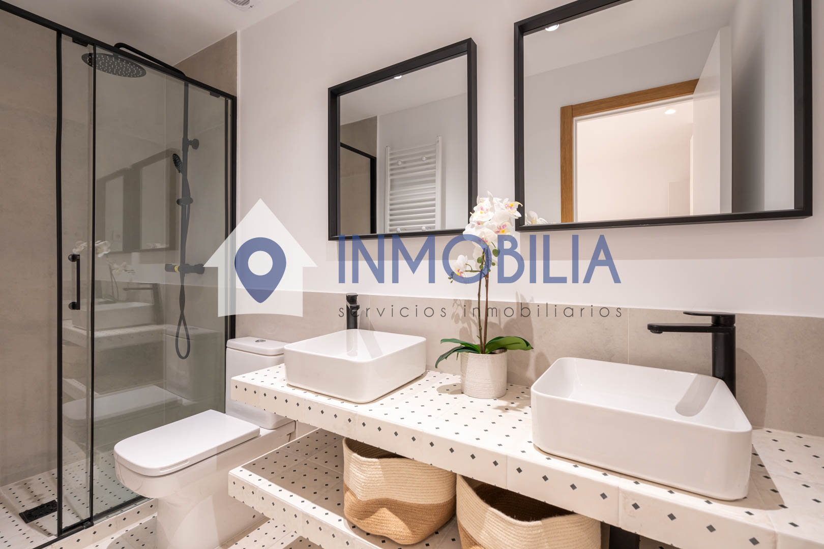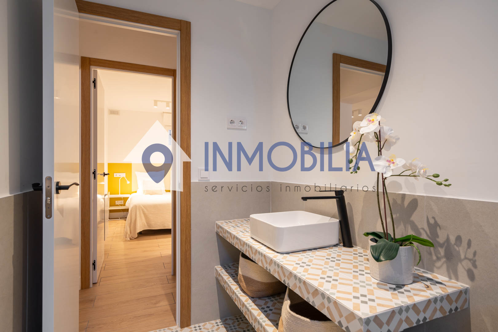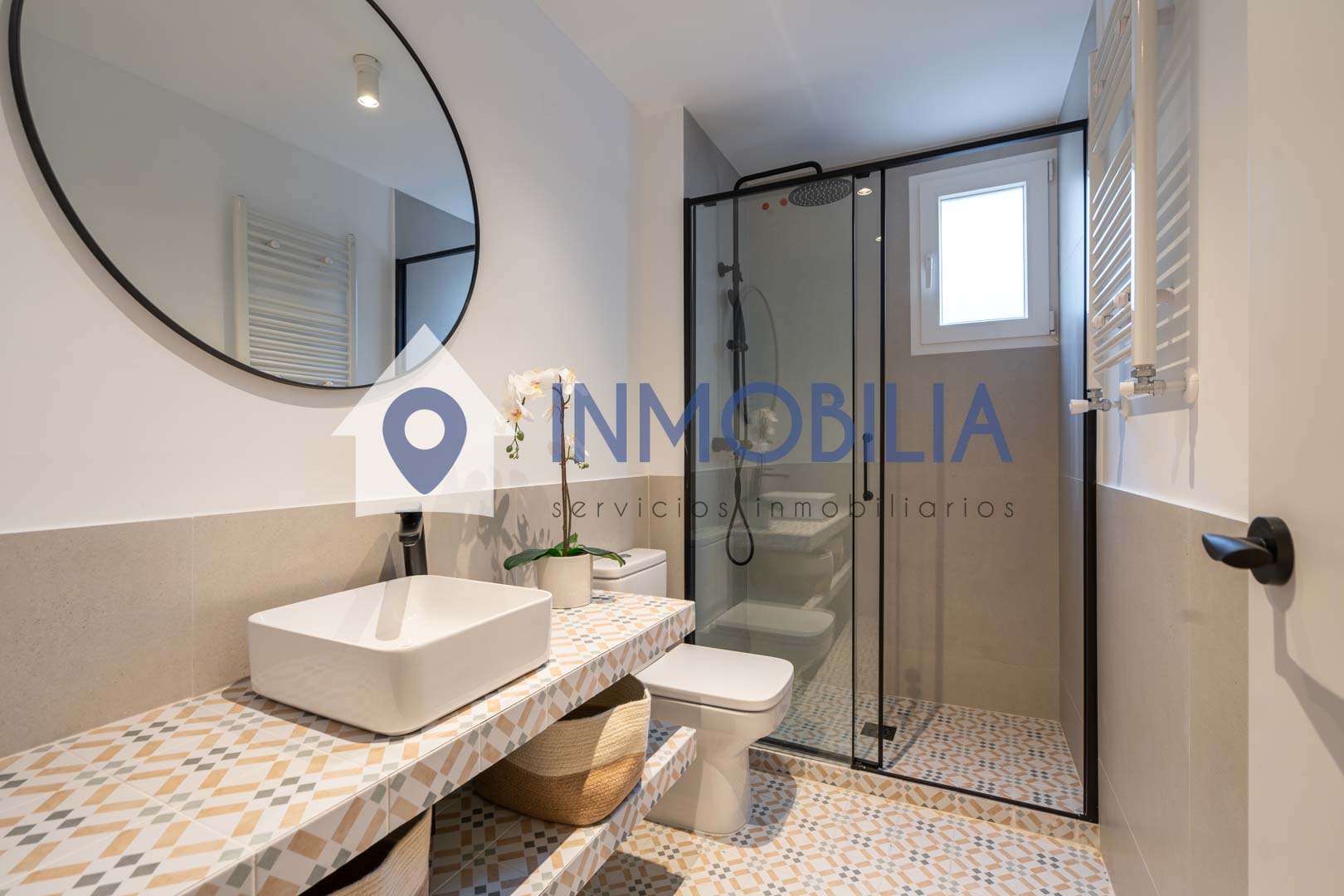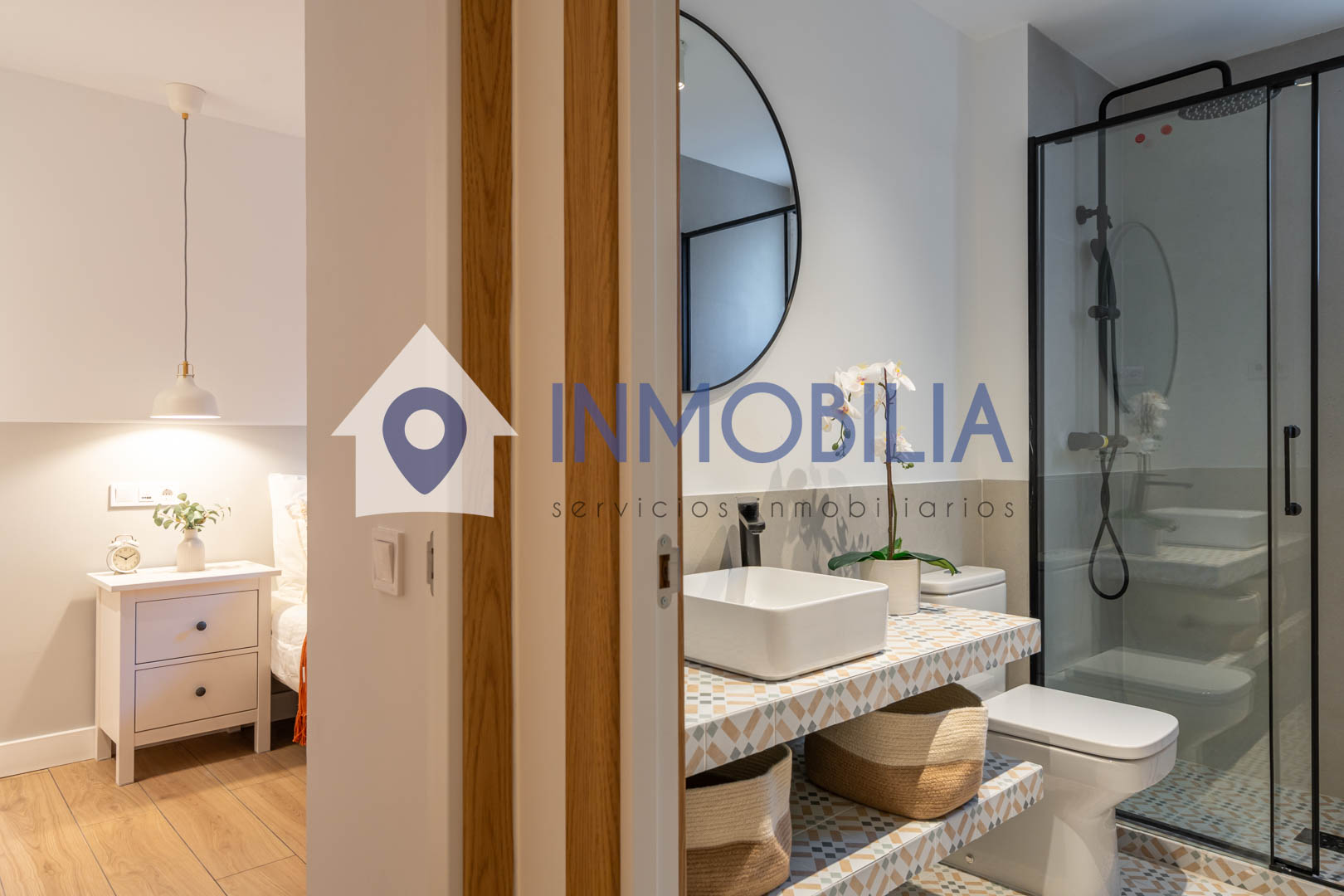 Desde el primer momento, la vivienda seduce. Todas las estancias tienen ventana, lo que garantiza luz natural y ventilación cruzada en cada rincón (sí, despiertas con luz, no con penumbras). La reforma integral ha sido diseñada con ojo de interiorismo: suelos cerámicos que imitan tarima de roble —elegancia sin complicaciones de mantenimiento—; baldas de obra en los baños, hechas a medida en cerámica, combinando funcionalidad con estética; y un trasdosado completo alrededor de la vivienda para blindarla frente a humedades. Aquí no solo compras un piso bonito: compras comodidad, durabilidad y tranquilidad futura.