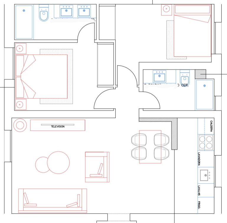 En cuanto al salón comedor, es el protagonista. Espacioso, bien distribuido, con zona de comedor donde invitar a amigos sin chocar con muebles ni pared, con una luz que lo acaricia durante buena parte del día. Y sus dos habitaciones dobles tienen lo que muchos buscan: armarios empotrados, para que no haya excusas con el orden. La habitación principal cuenta con baño en suite y lavabo doble (¡adiós colas para el aseo matutino!). El otro baño es completo y da servicio al resto de la casa con ese estilo discreto y eficiente que uno agradece.