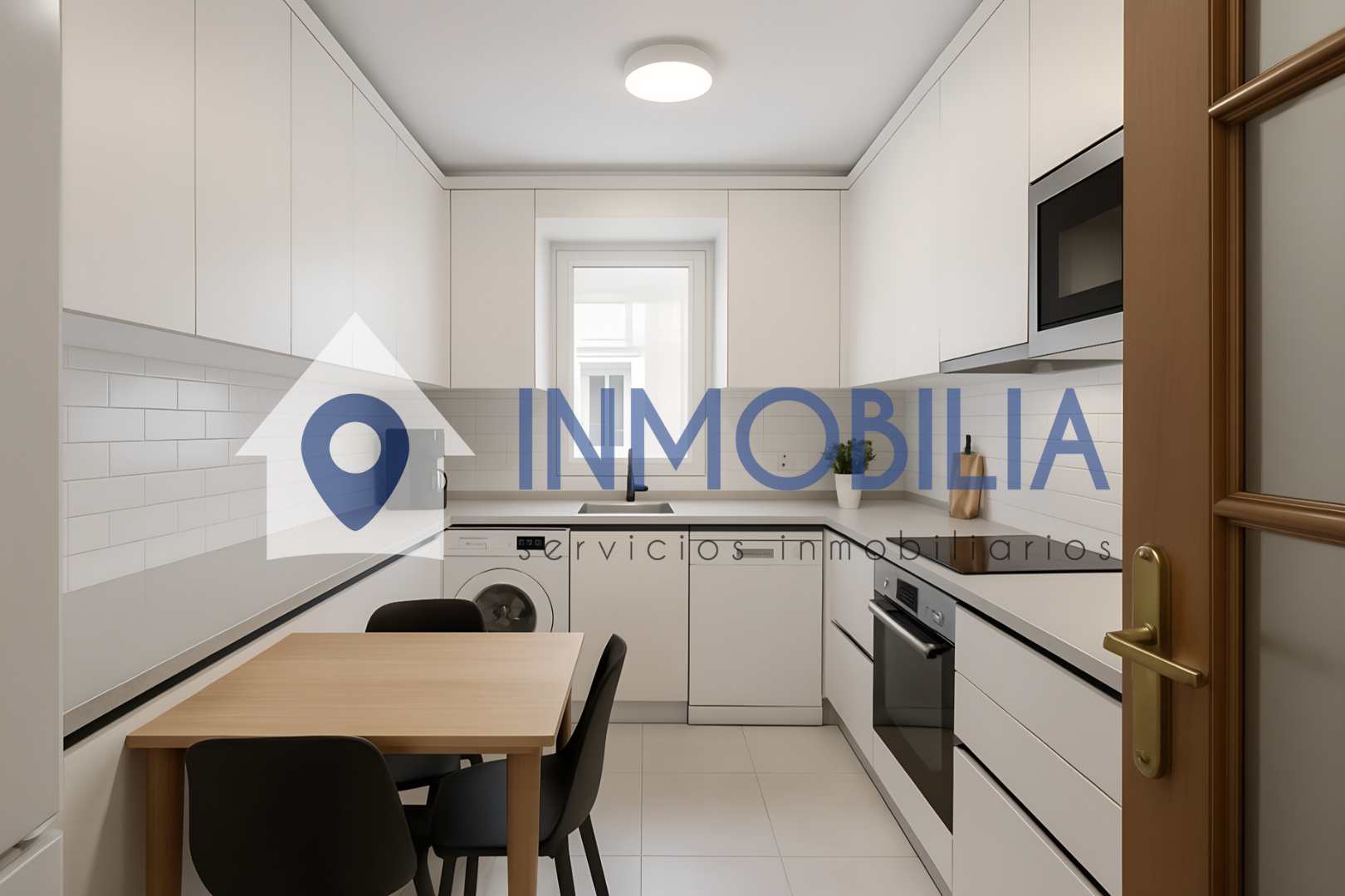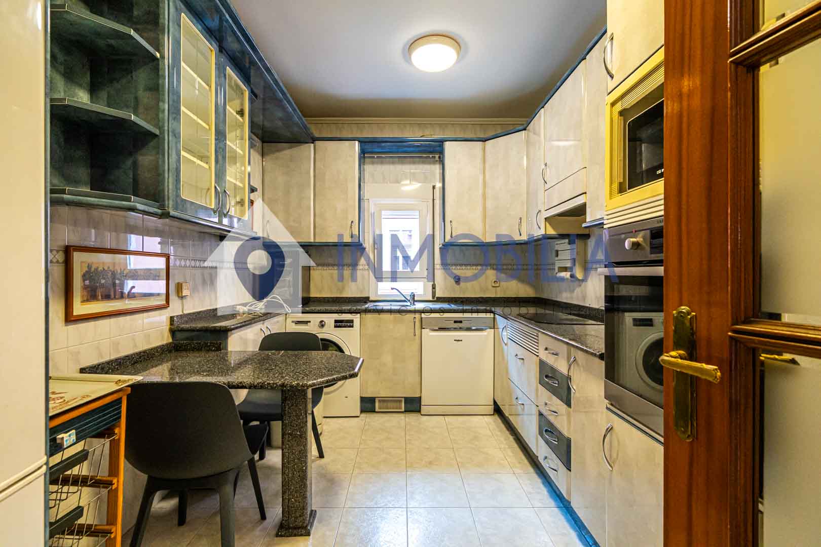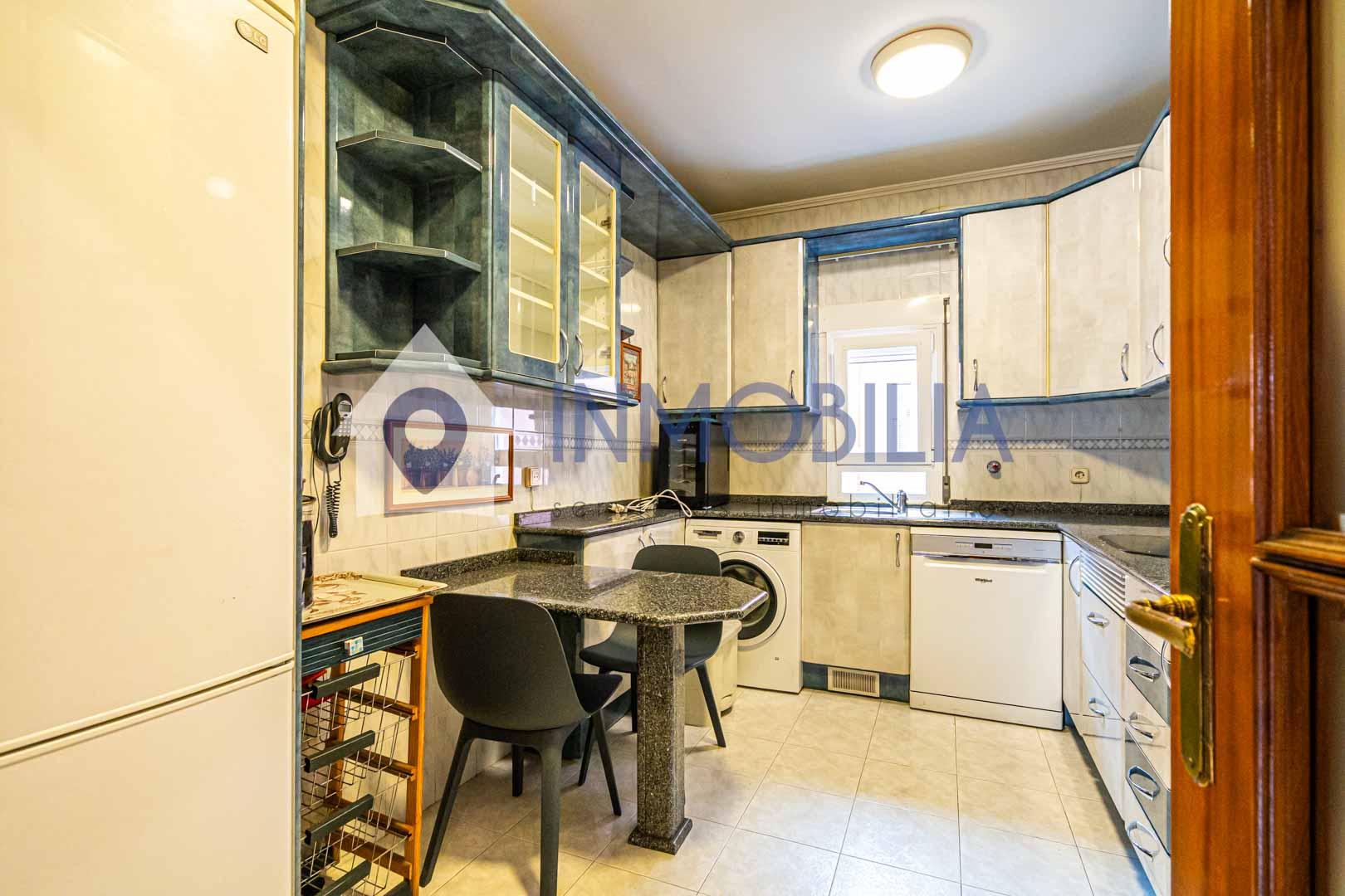 La cocina, independiente y completamente equipada, cuenta con electrodomésticos modernos e instalaciones actualizadas. La vivienda dispone de dos dormitorios dobles con armarios empotrados y un despacho con estanterías a medida que puede ser adaptado fácilmente como tercer dormitorio. El baño, amplio y reformado, está equipado con columna de ducha.