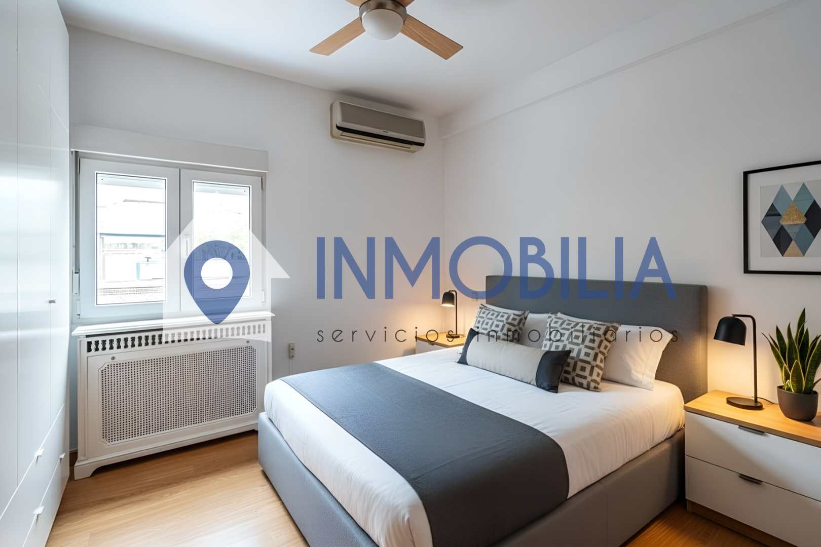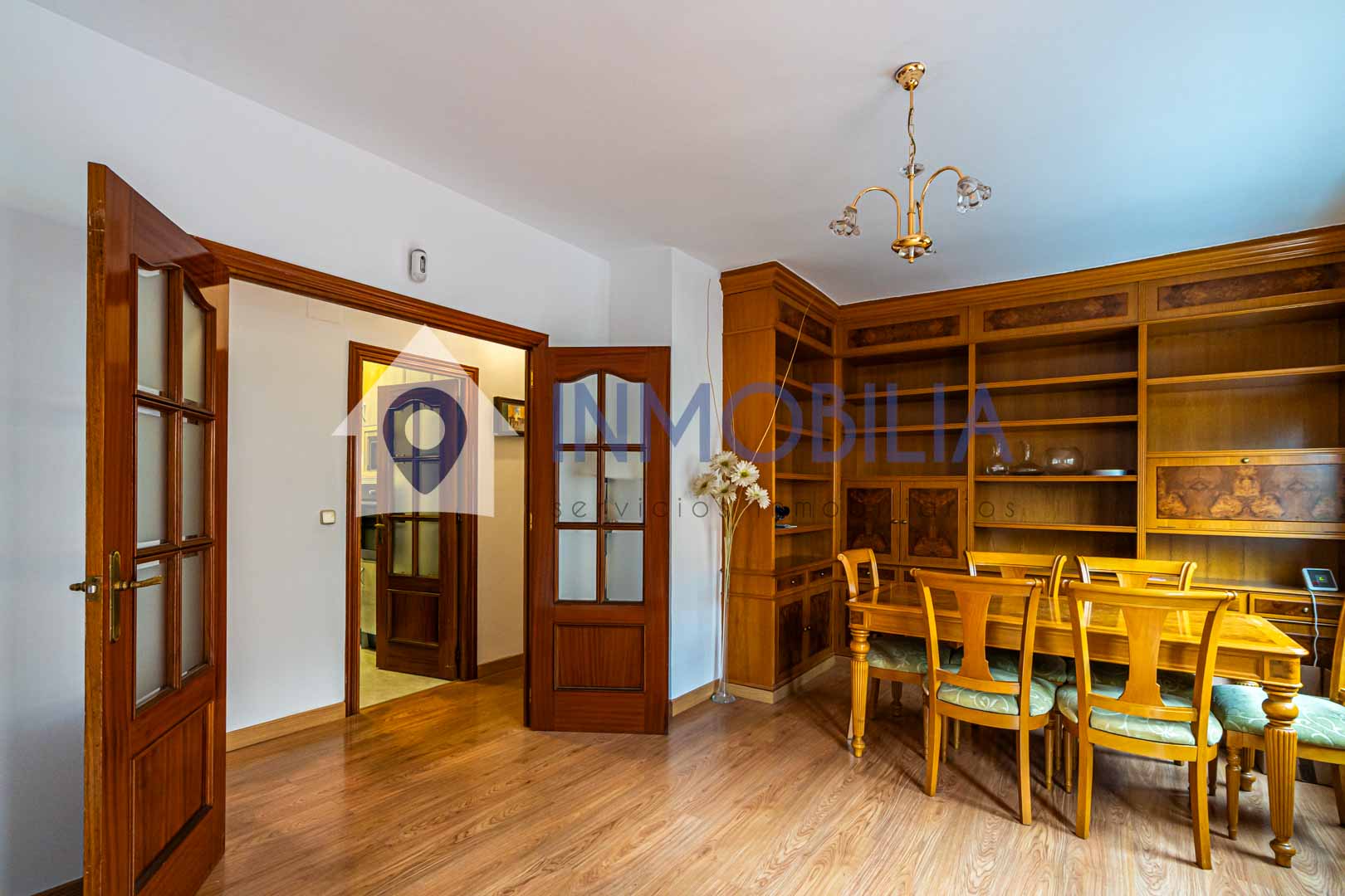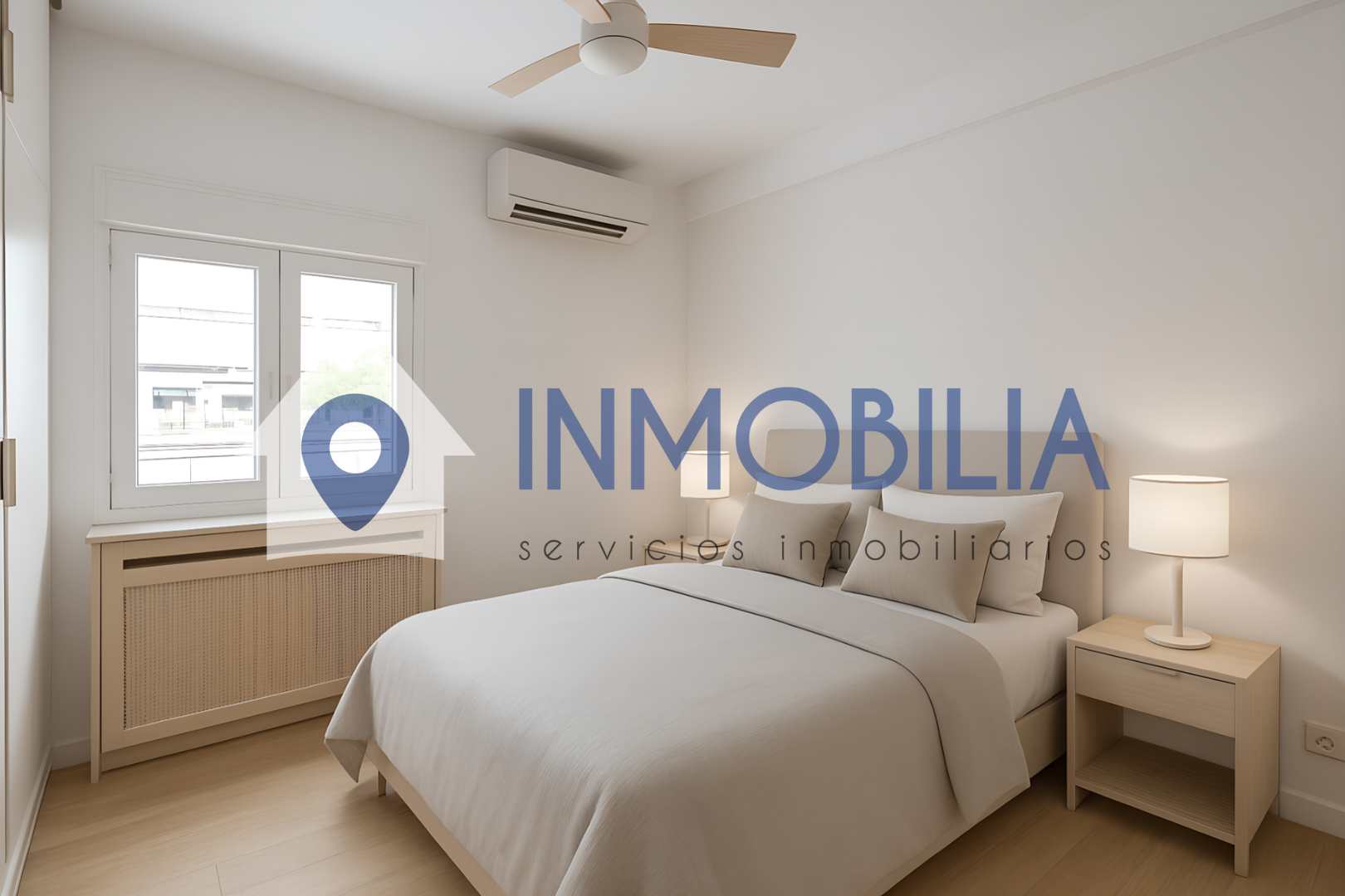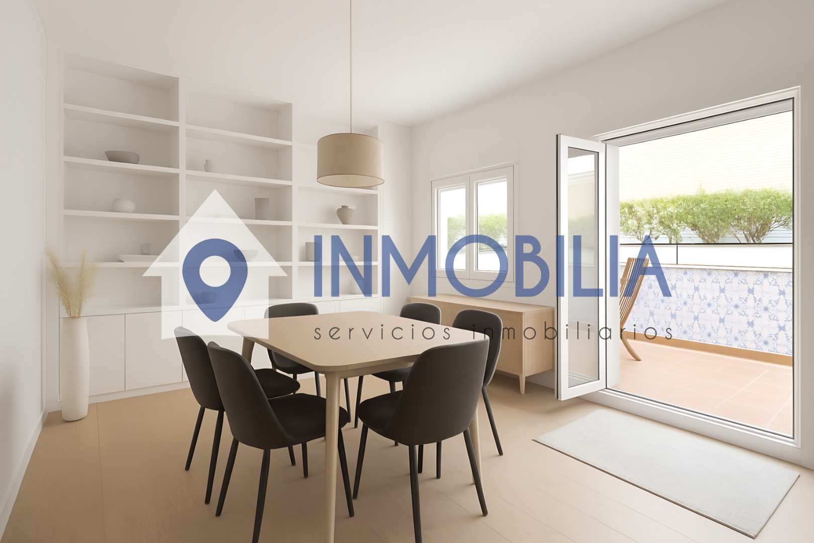 La cocina, independiente y completamente equipada, cuenta con electrodomésticos modernos e instalaciones actualizadas. La vivienda dispone de dos dormitorios dobles con armarios empotrados y un despacho con estanterías a medida que puede ser adaptado fácilmente como tercer dormitorio. El baño, amplio y reformado, está equipado con columna de ducha.