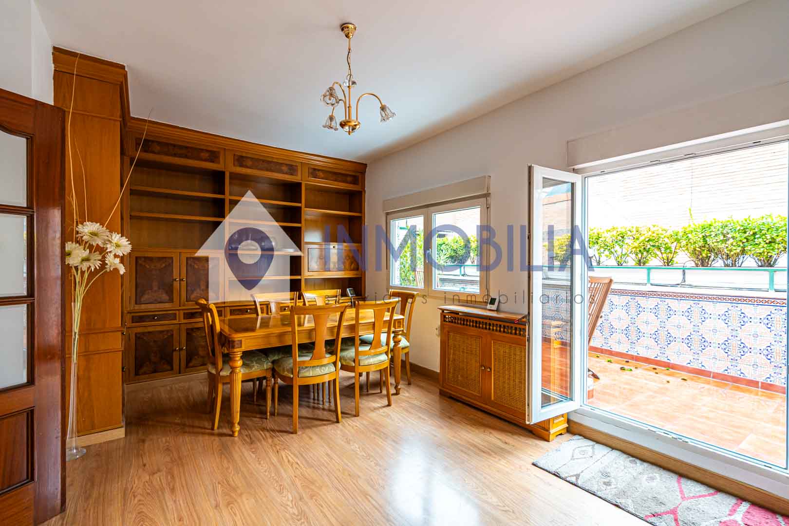 Este magnífico ático de 102 m² construidos se presenta listo para entrar a vivir. Su distribución funcional, con un hall de entrada que da paso a un acogedor salón comedor con librería a medida, desde el cual se accede directamente a una espectacular terraza de más de 25 m² orientada al oeste. Dotada de toldos, riego automático y plantas ornamentales, ofrece privacidad y un espacio ideal para el descanso o el entretenimiento al aire libre.
