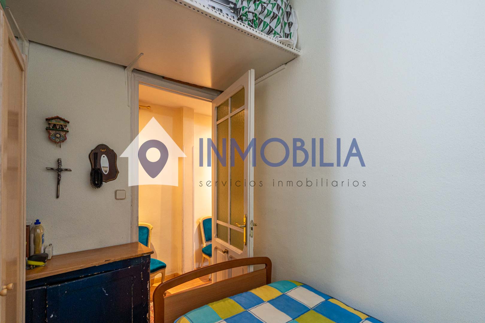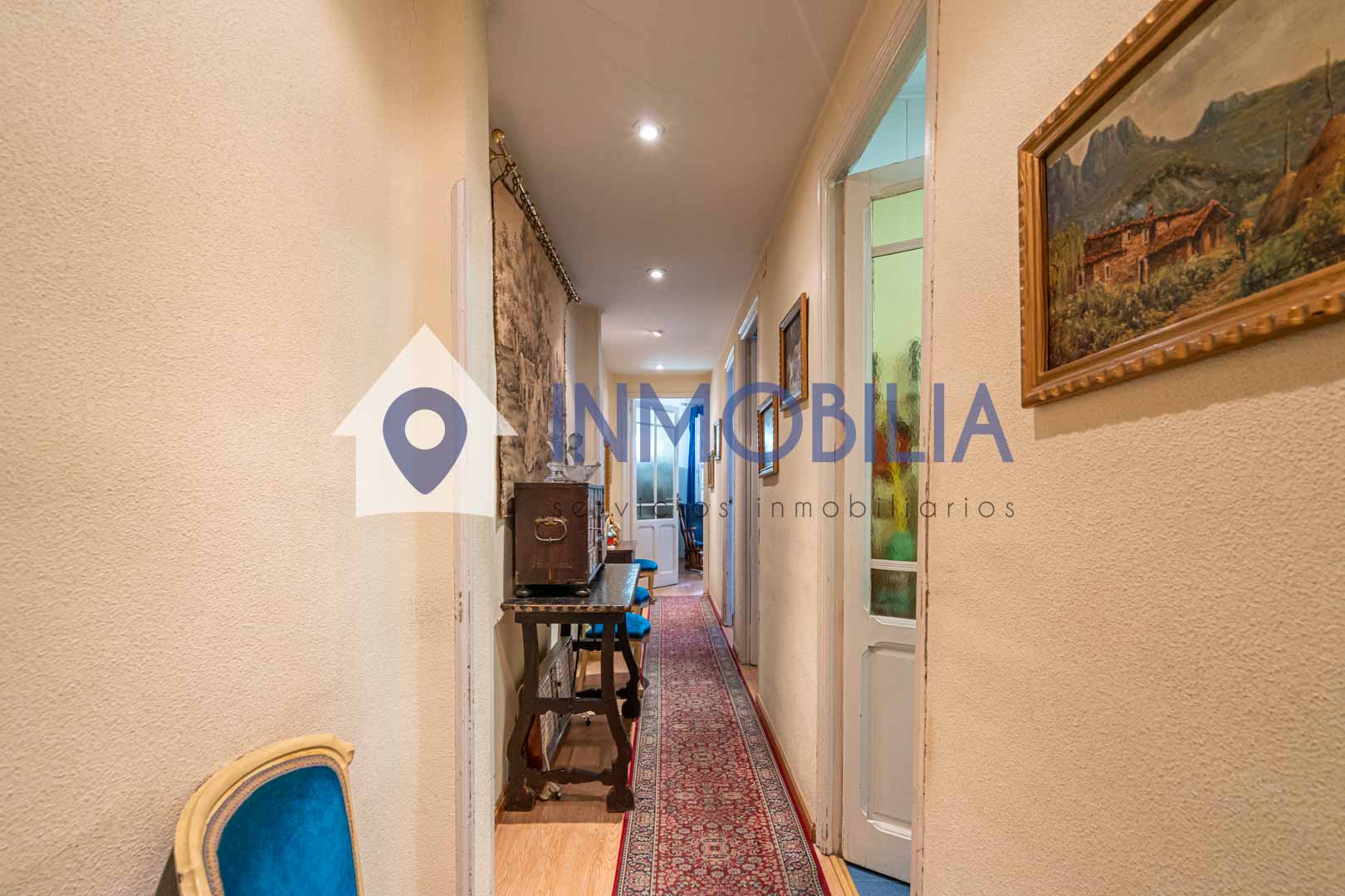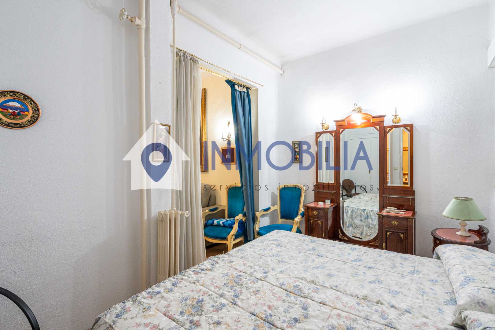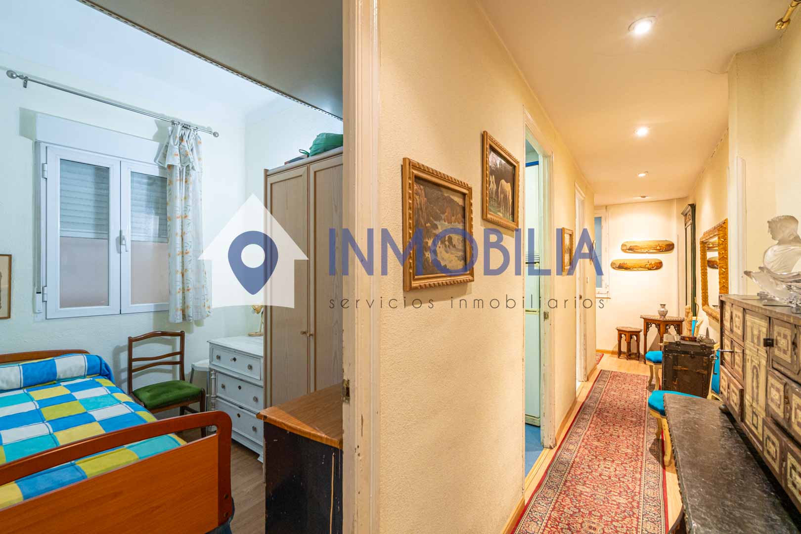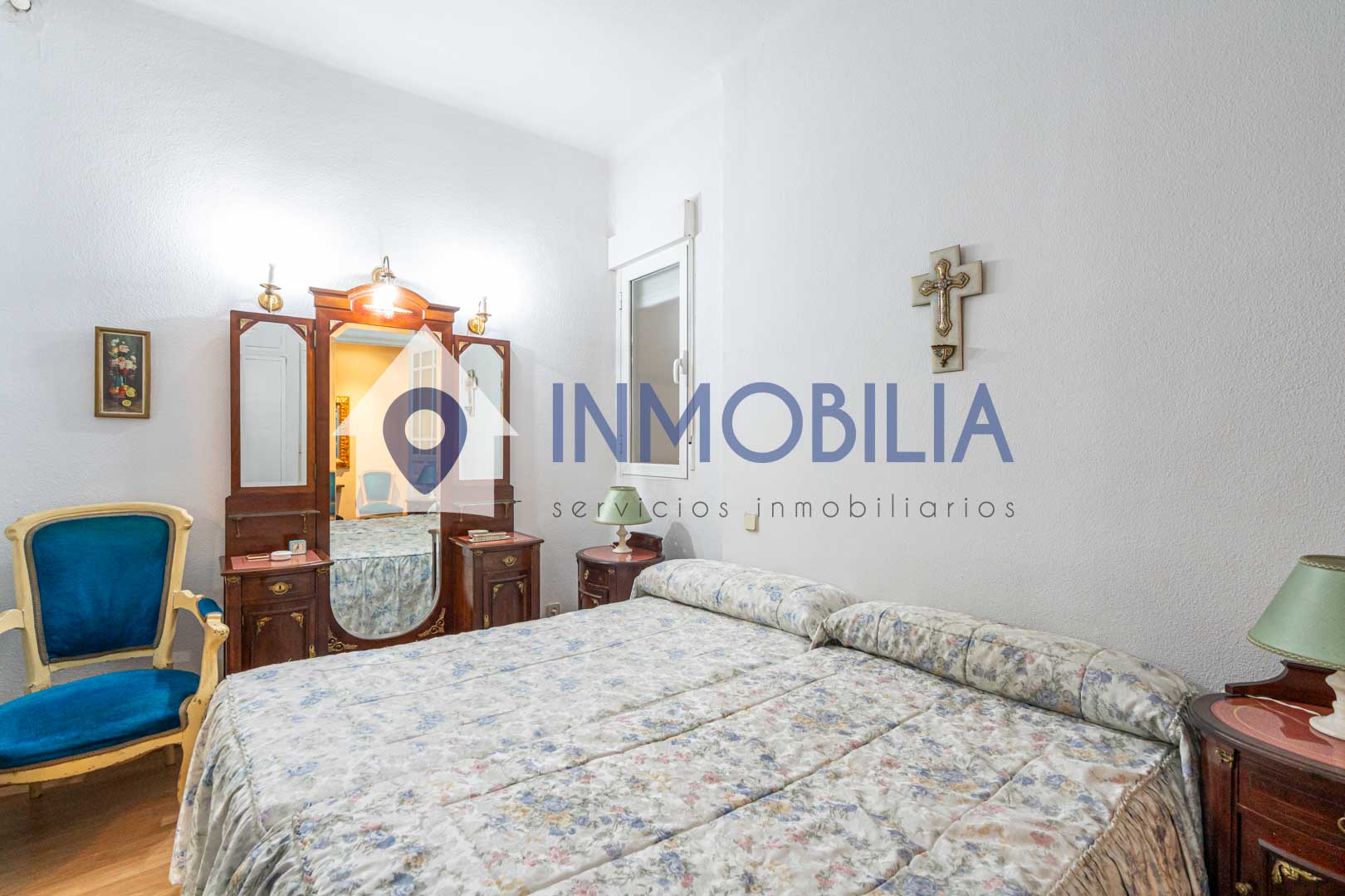 La vivienda, situada en una primera planta alta con orientación norte, dispone de 100 m² construidos (según catastro), con 90 m² de vivienda. Actualmente cuenta con dos amplios dormitorios, ( antes eran tres), un baño completo, cocina independiente y un generoso salón-comedor presidido por dos grandes ventanales que se abren a la calle, lo que garantiza luz natural y una agradable sensación de amplitud.