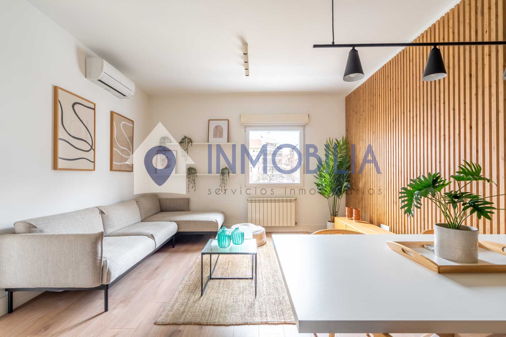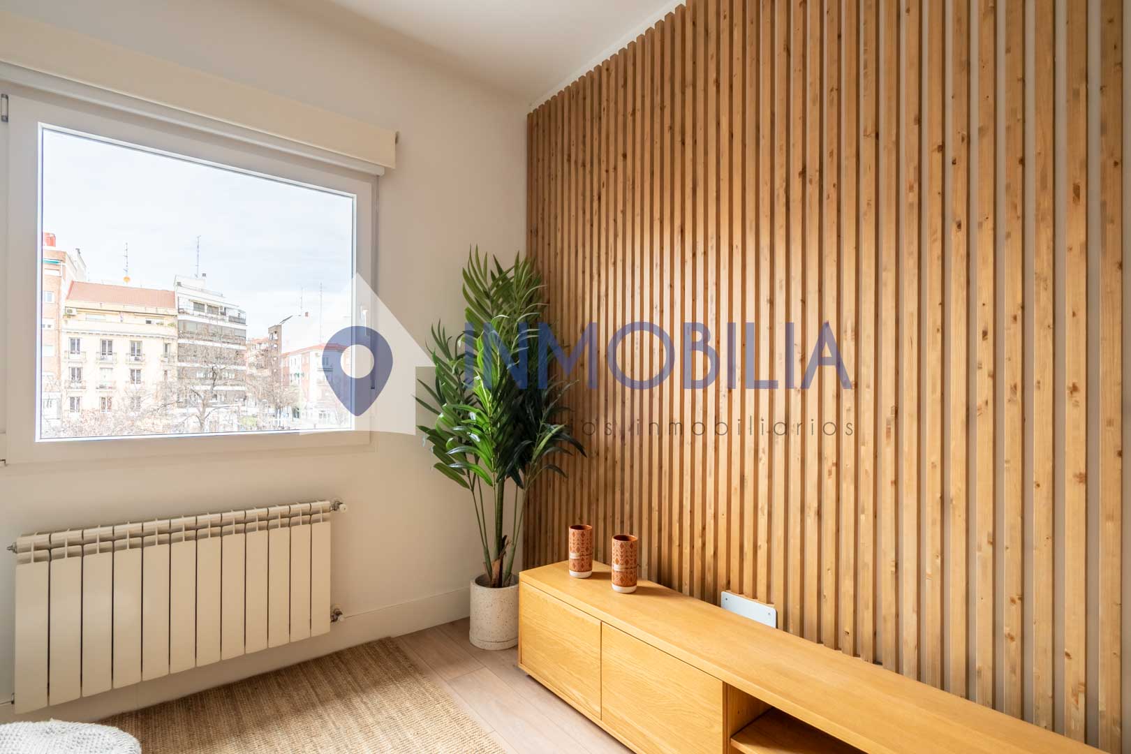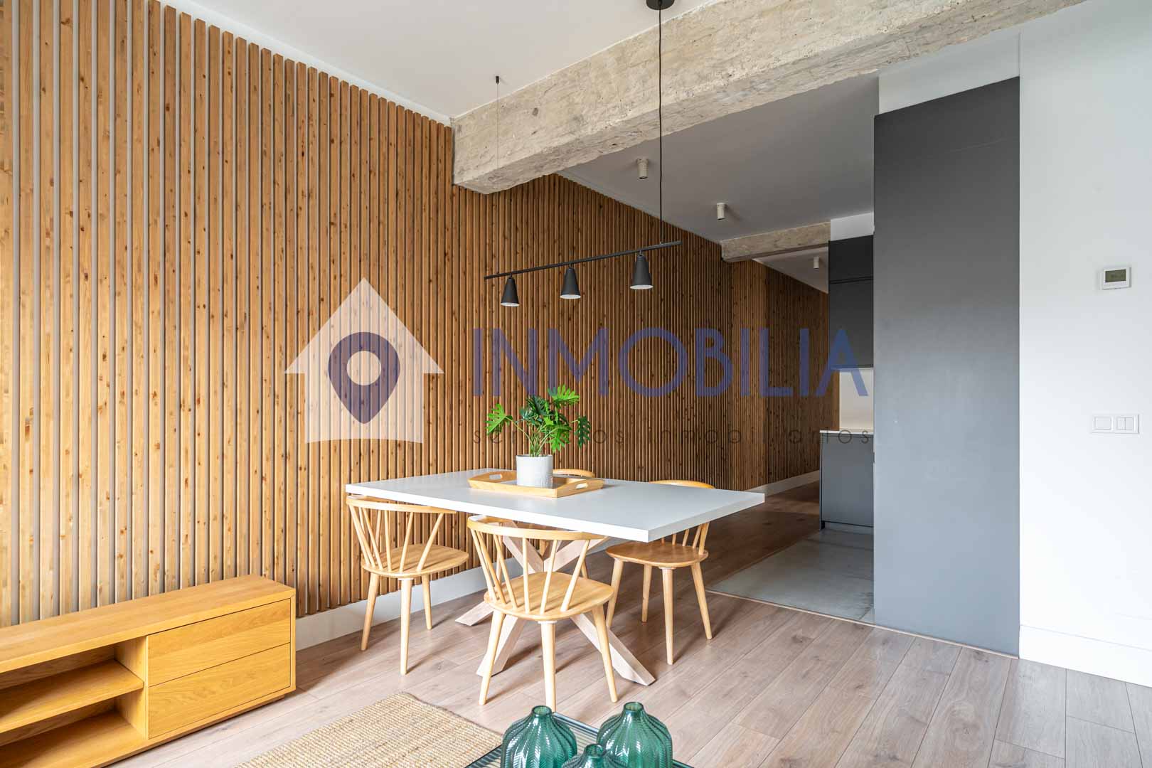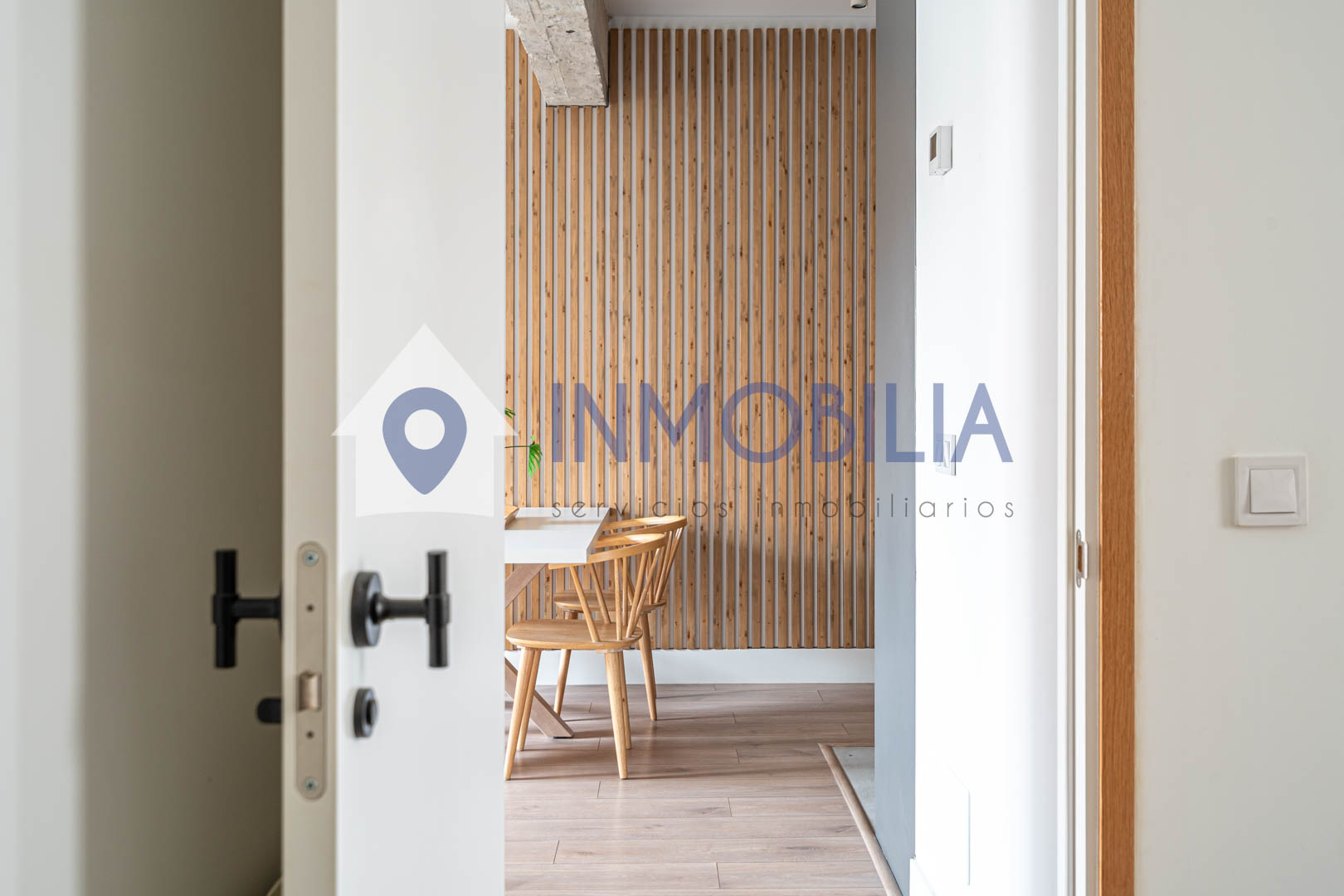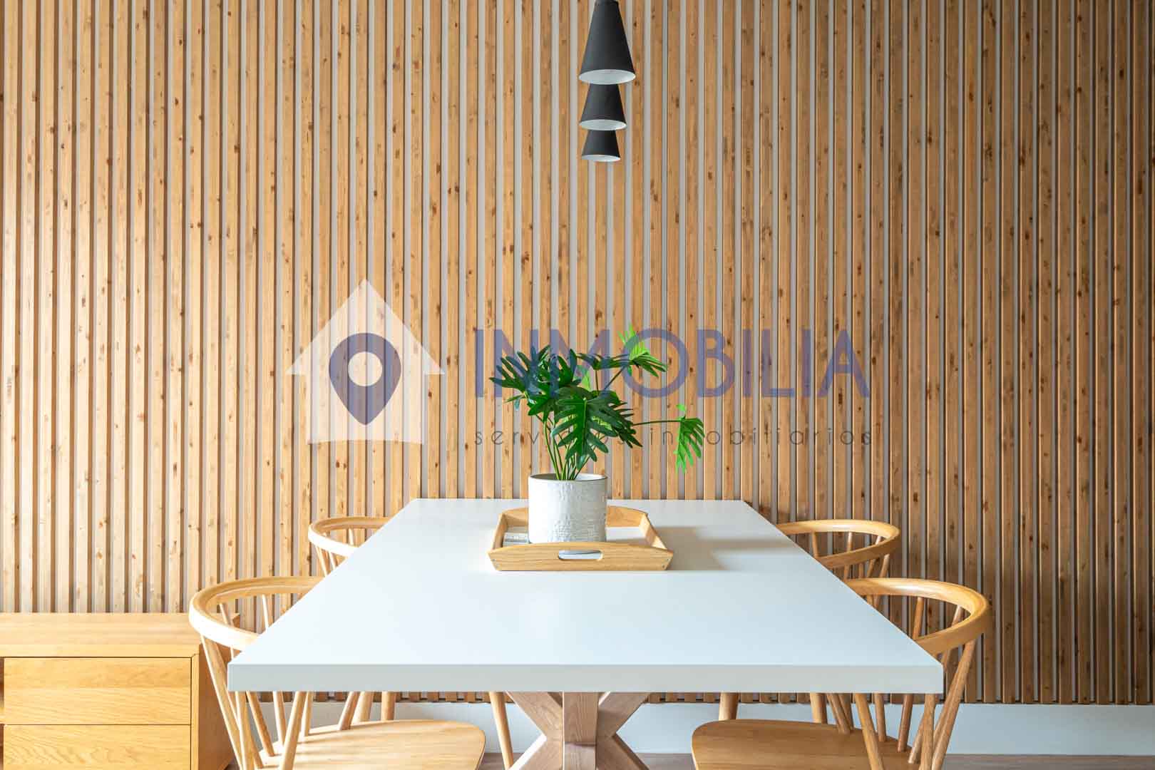 Porque este piso no es solo una vivienda, es una sensación. Es abrir la puerta y que pase algo. Es entrar y pensar: “wow, aquí me quedo”. Hablamos de una vivienda de casi 100 m², una segunda planta exterior con una luz espectacular y una reforma reciente (apenas tres años) con un diseño de interiorismo que marca la diferencia desde el primer momento. Los techos, cercanos a los tres metros, junto con los panelados en listones de roble y las puertas a techo, crean un ambiente moderno, elegante y acogedor a partes iguales.