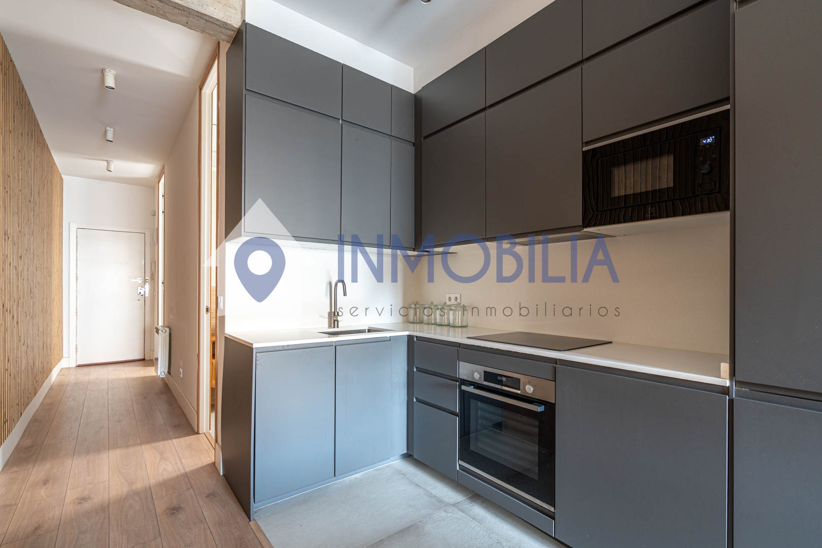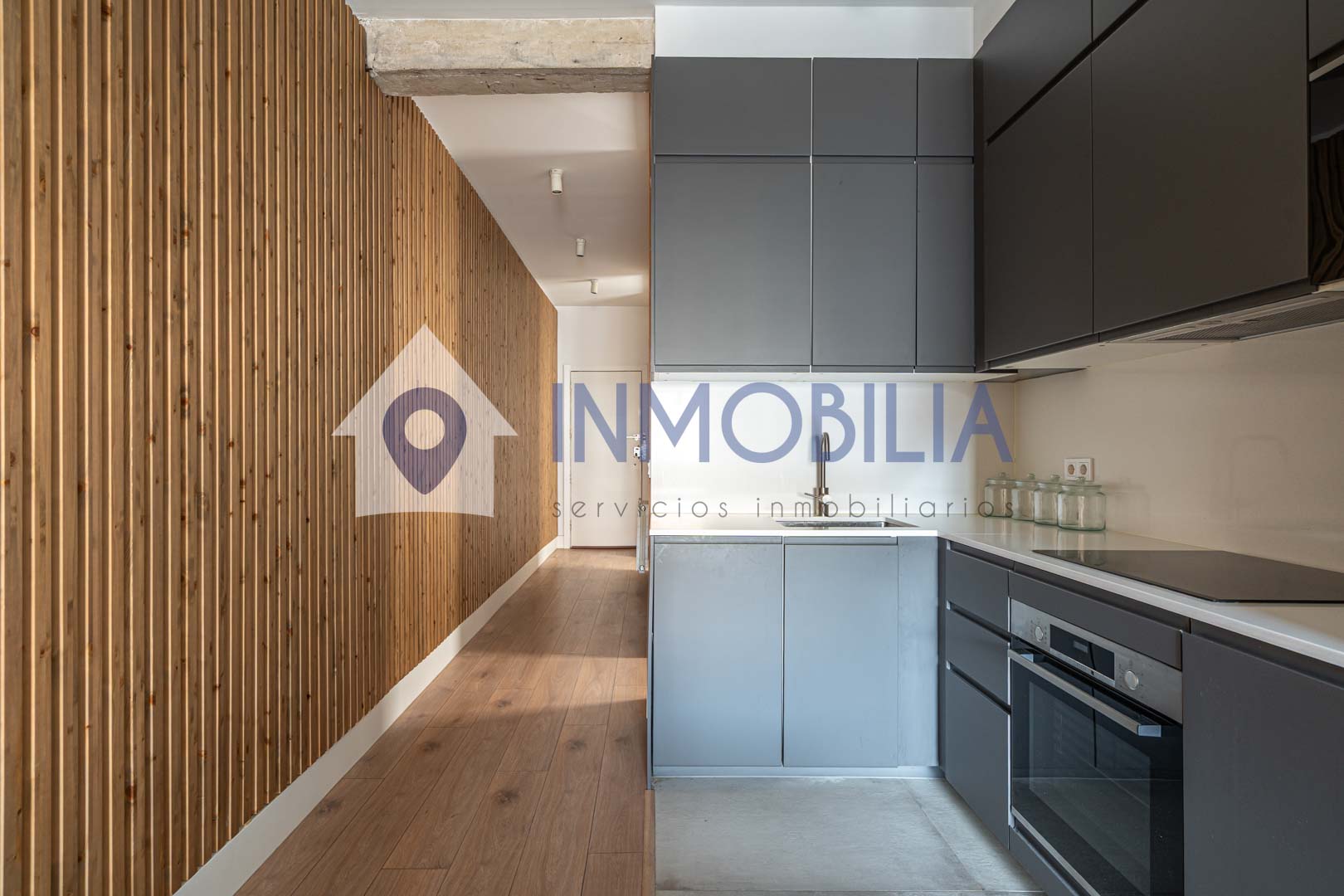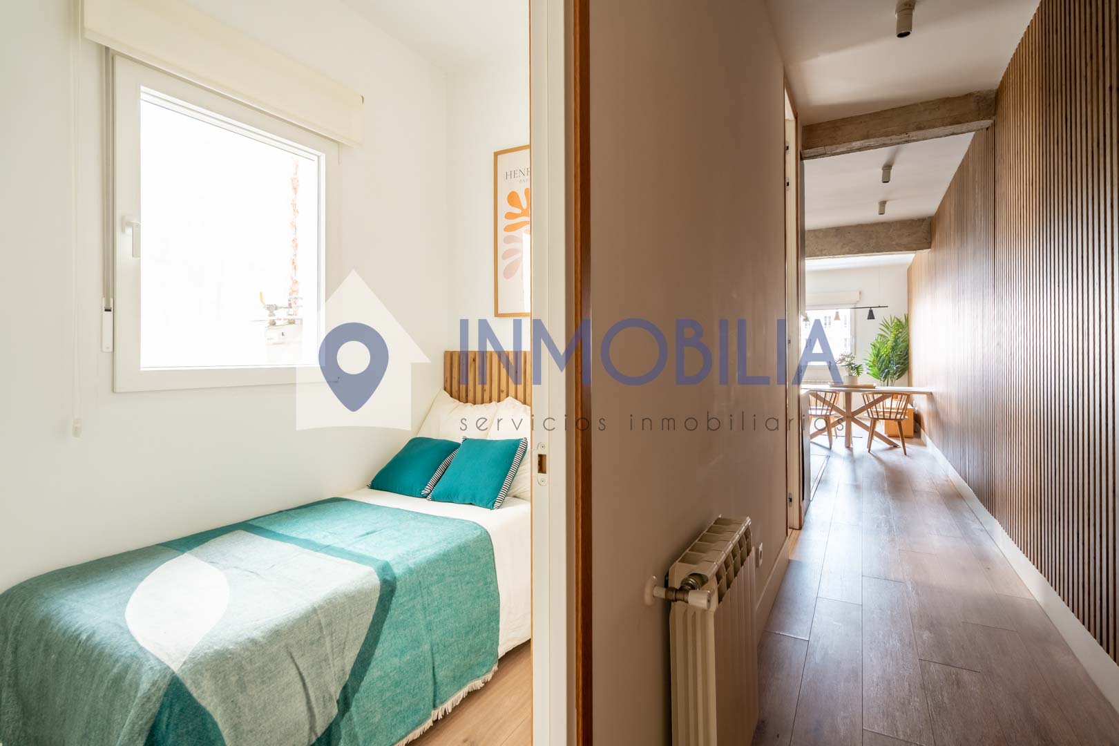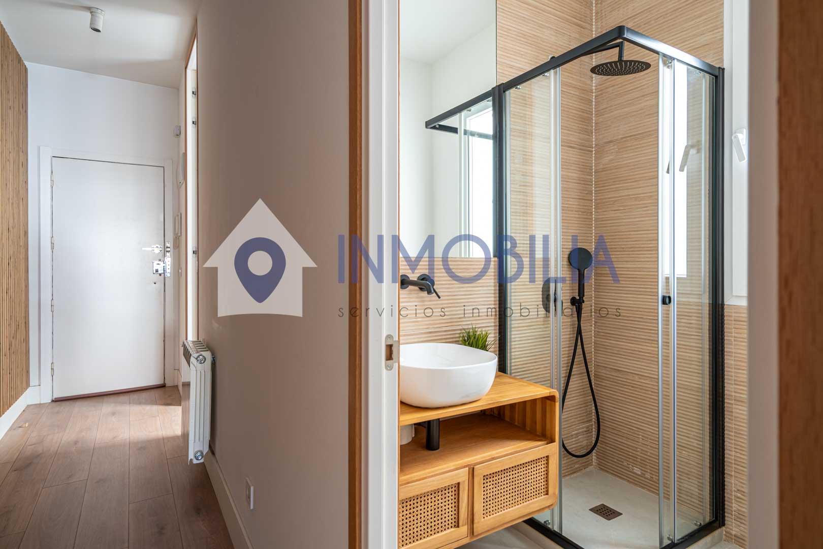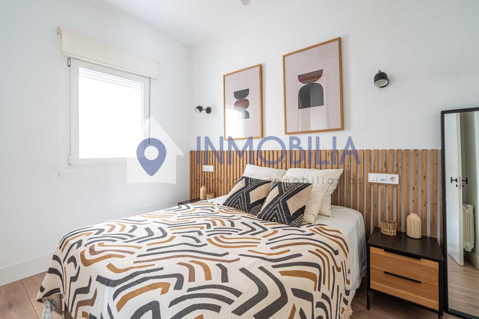 Porque este piso no es solo una vivienda, es una sensación. Es abrir la puerta y que pase algo. Es entrar y pensar: “wow, aquí me quedo”. Hablamos de una vivienda de casi 100 m², una segunda planta exterior con una luz espectacular y una reforma reciente (apenas tres años) con un diseño de interiorismo que marca la diferencia desde el primer momento. Los techos, cercanos a los tres metros, junto con los panelados en listones de roble y las puertas a techo, crean un ambiente moderno, elegante y acogedor a partes iguales.