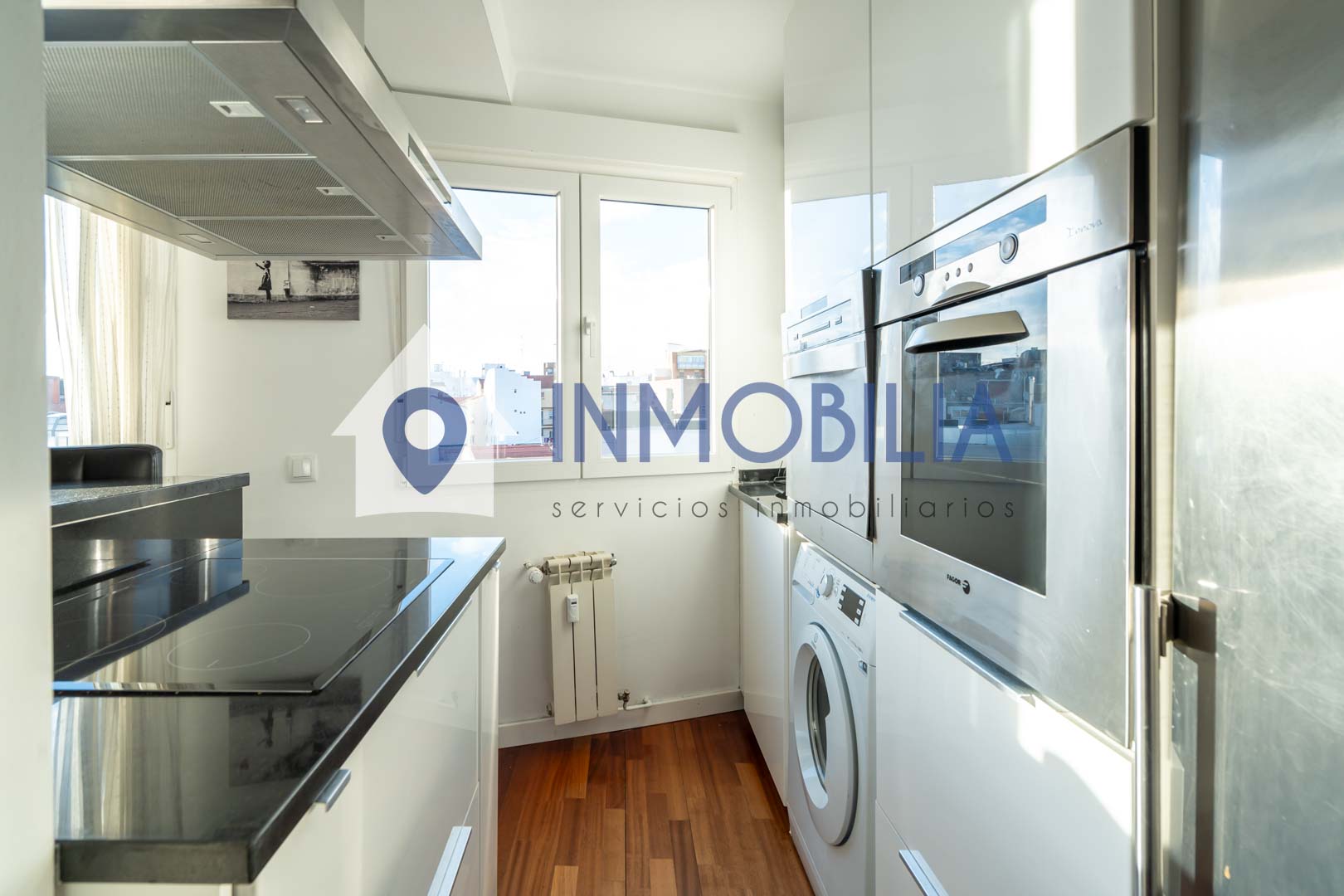 Grupo Inmobilia pone a tu disposición esta excelente vivienda exterior, situada en una sexta y última planta del edificio en la calle Alonso Castrillo, esquina con Infanta Mercedes, en el consolidado barrio de Cuzco-Castillejos, a escasa distancia del Pº de la Castellana. Con 61 m² escriturados y una plaza de garaje de acceso directo incluida, esta propiedad ofrece una distribución funcional y luminosa que incluye dos dormitorios, dos cuartos de baño y una cocina en concepto abierto integrada al salón-comedor, lo que aporta amplitud y versatilidad a los espacios comunes.