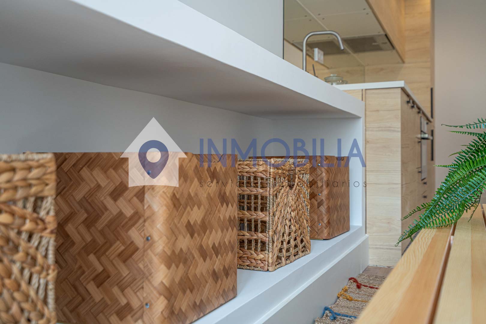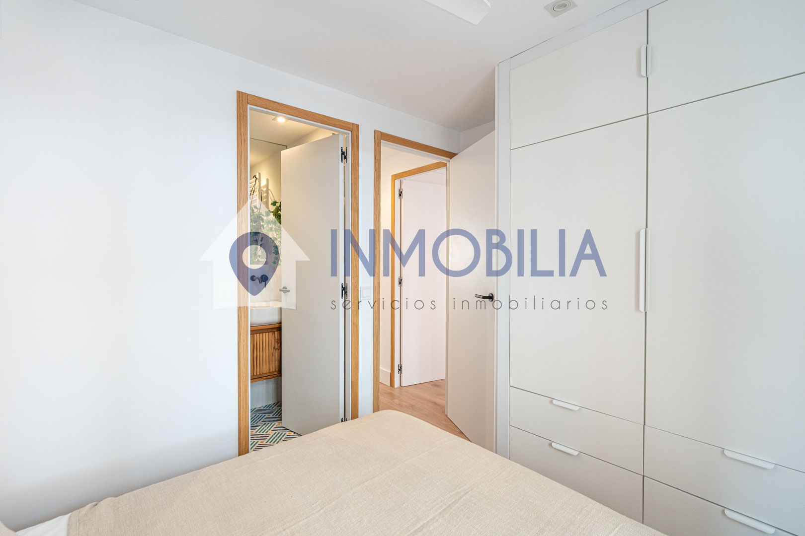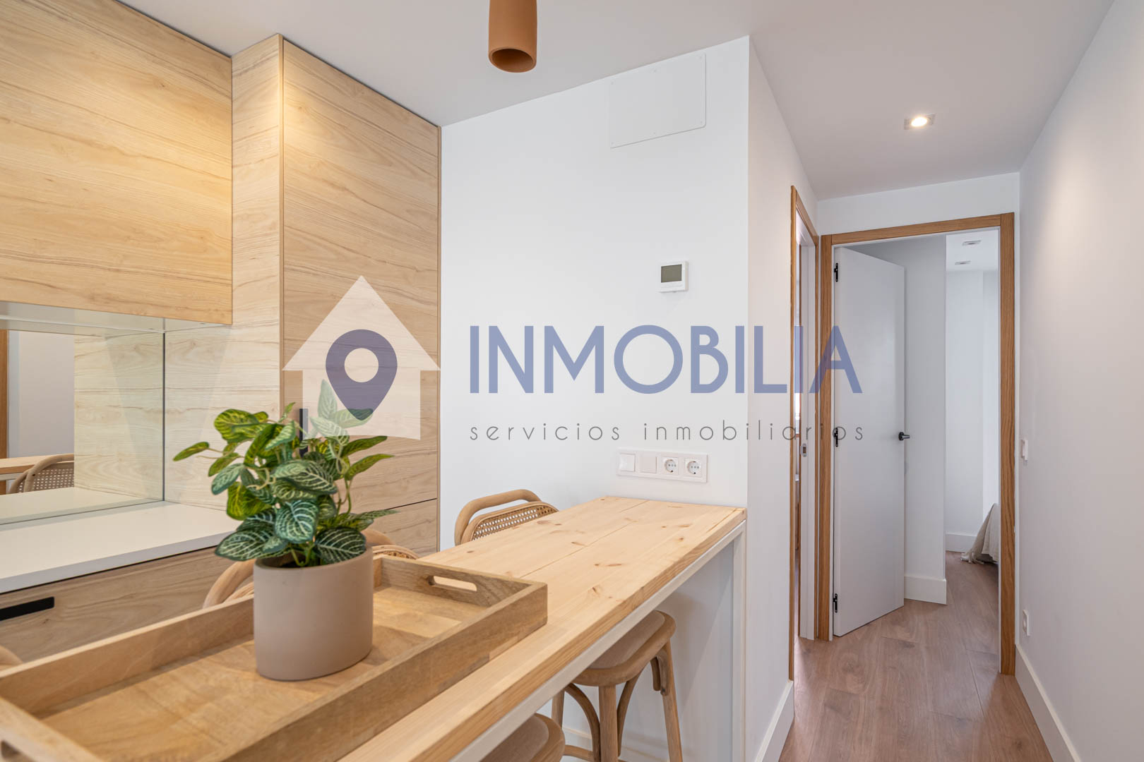 Y sí, la cocina está equipada. Pero no equipada de “bueno, algo hay”, no. Todo integrado, panelado, limpio, listo. Como el resto del piso. Hasta el punto de que no tienes que pensar ni en colchones. Ni en nada, en realidad.