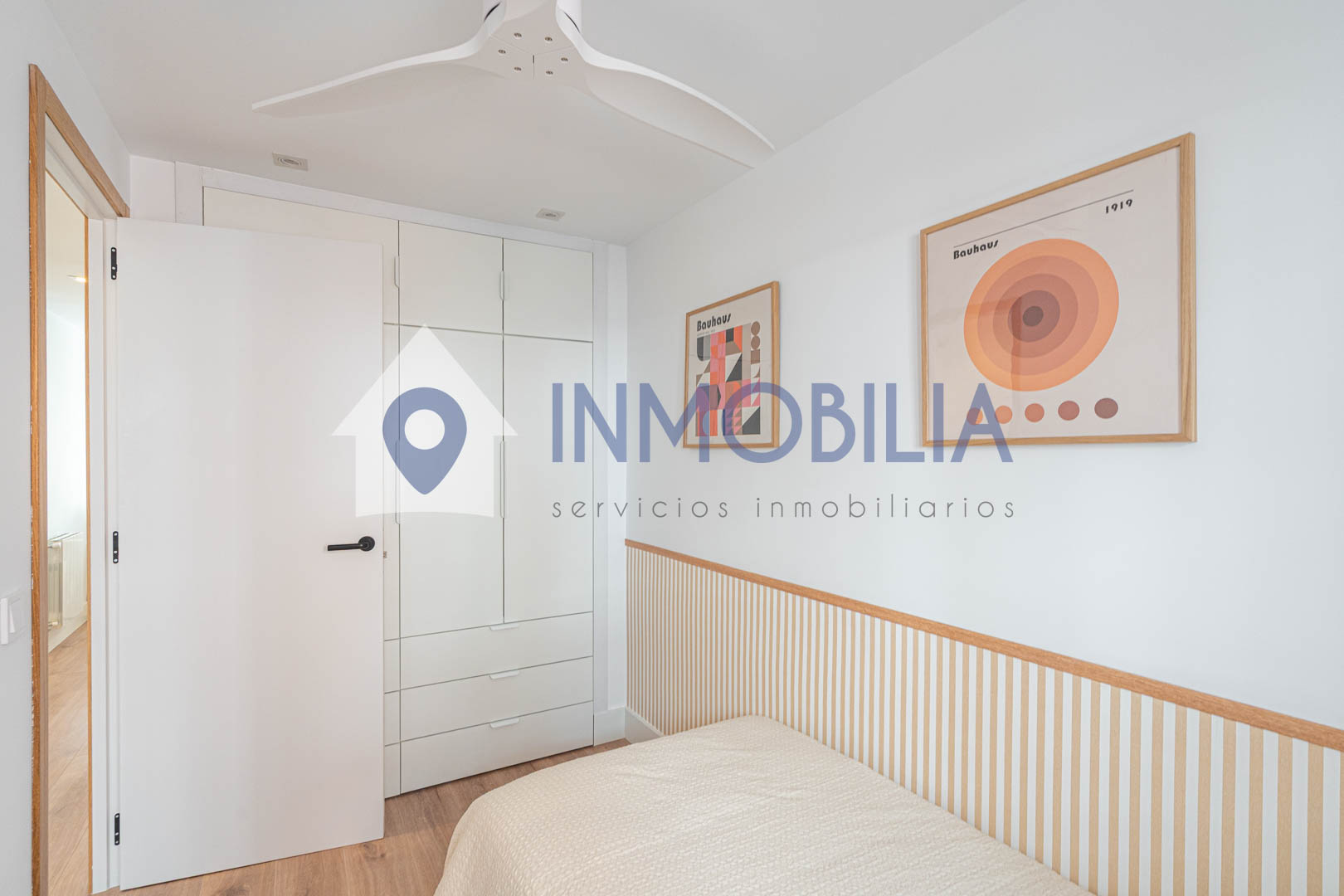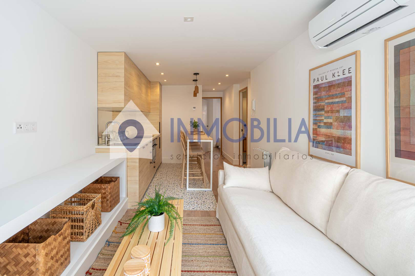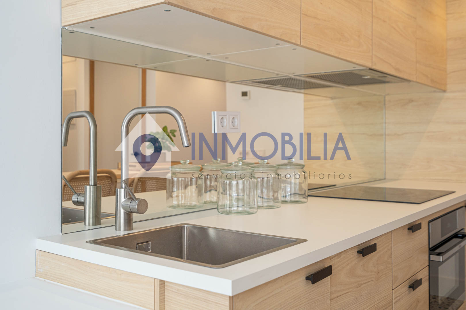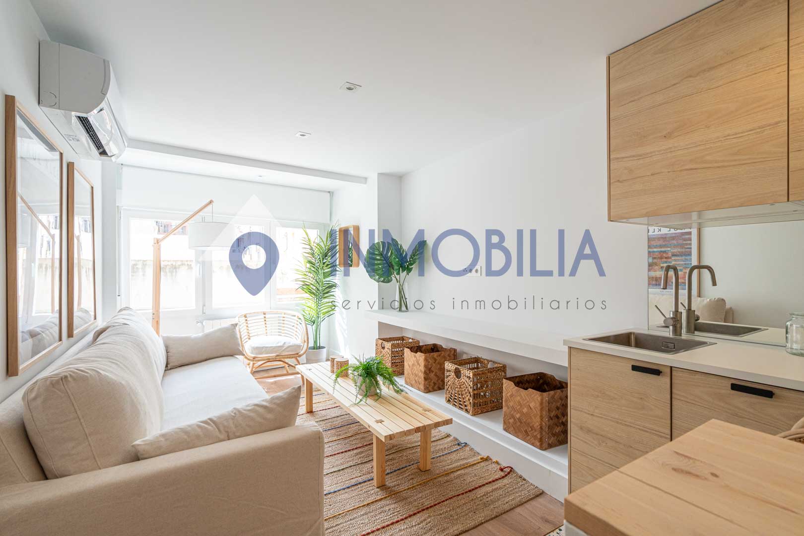 Y sí, la cocina está equipada. Pero no equipada de “bueno, algo hay”, no. Todo integrado, panelado, limpio, listo. Como el resto del piso. Hasta el punto de que no tienes que pensar ni en colchones. Ni en nada, en realidad.